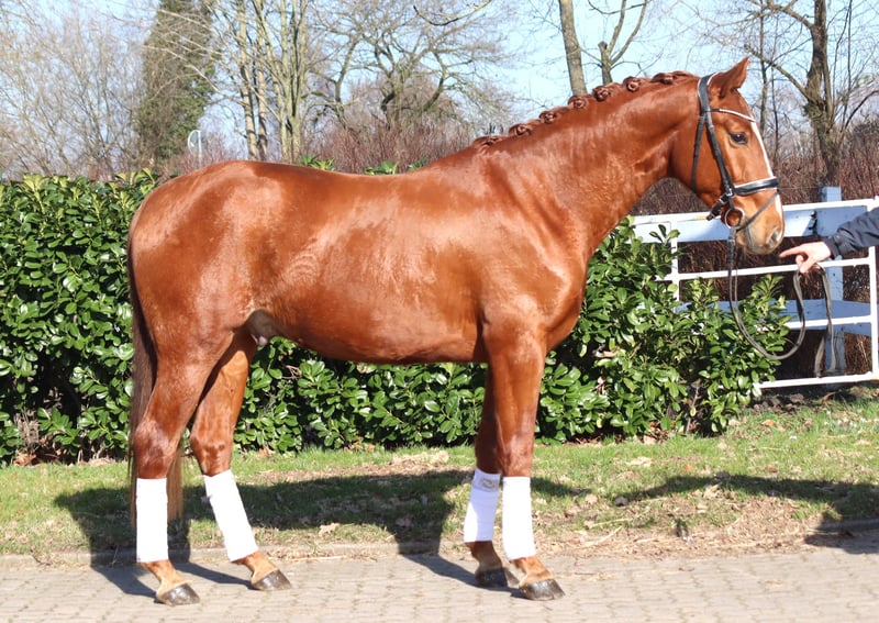 Sympathischer 3 jähriger Wallach von Fürstenlook x Samarant, mit 3 sehr guten Grundgangarten. Er ist brav im Umgang jedoch noch nicht angeritten. Preis zzgl. Mwst. Anfragen nur telefonisch, E-mails werden nicht beantwortet.