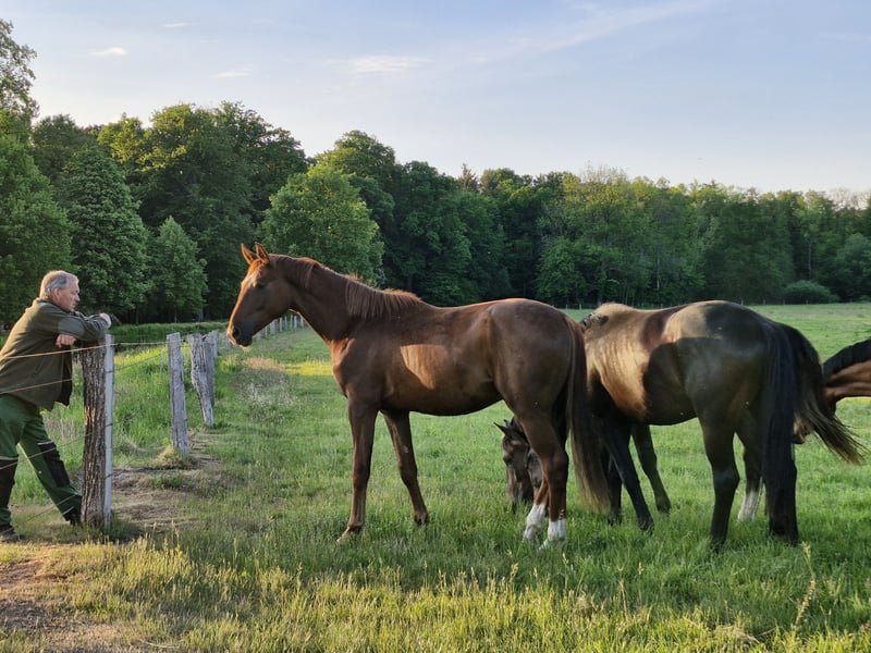 Vendemos nuestro potro de 2 años y medio, crudo, de la pradera de verano. Absolutamente correcto y con la cabeza clara, este joven seguramente se convertirá en un excelente caballo de doma o de salto. No es posible sacarlo del grupo para grabar videos, pero puede venir a verlo en persona.