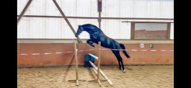 Verkauft wird ein schwarzbrauner Wallach von For Real x Quantensprung. Er war zur Körung zugelassen, wurde aber nicht gekört. Mittlerweile ist er Wallach und angeritten. Er zeigt im Freispringen einen sehr guten Sprung, weswegen er sich auch für die Vielseitigkeit eignen könnte. Röntgen TÜV vorhanden. Kennt Hänger fahren, ist ausgiebig longiert und schon sicher im Umgang. Im Moment ist er gut angeritten. Gerne Termin zum Kennenlernen, gerne per whatsapp unter 0157-36343268 vereinbaren.