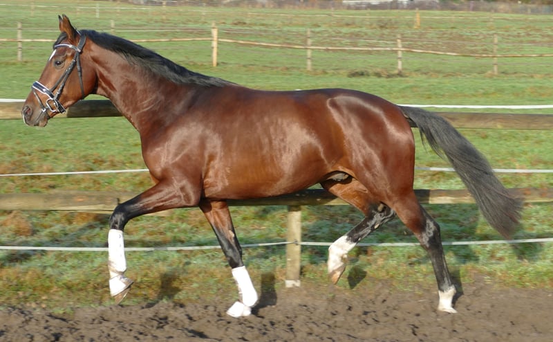 From a top breeding farm, half-brother to Vivino and two other licensed stallions, two half-siblings successful in Grand Prix competitions, good X-ray results available, including the back. A performance-oriented gelding with an excellent temperament, previously only lunged, will be saddle trained soon. A 4-year-old full brother achieved an 8.0 in dressage test class A (2nd place) and an 8.2 in riding horse class (3rd place) this year and is no longer for sale.