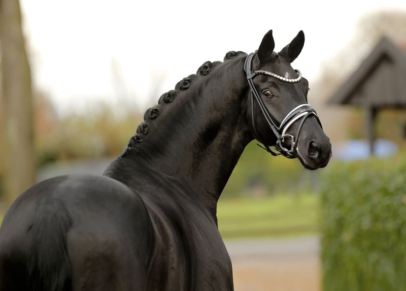 Jet black beauty with stunning presentation and impressive appearance! A solid and gently started young horse with a gold-hearted character, possessing "must-have" charm and equally excellent training potential. Always striving to do everything right and to please, while remaining honest, sincere, and eager to learn. Not only a visual dream horse and an unparalleled eye-catcher for special occasions, but also a lovable young colt at heart—searching for the perfect home. Top inspection, shipping available upon request.