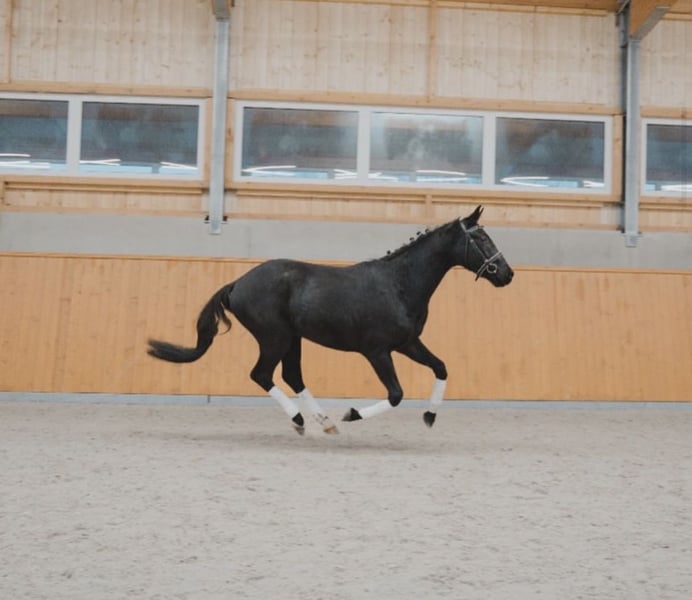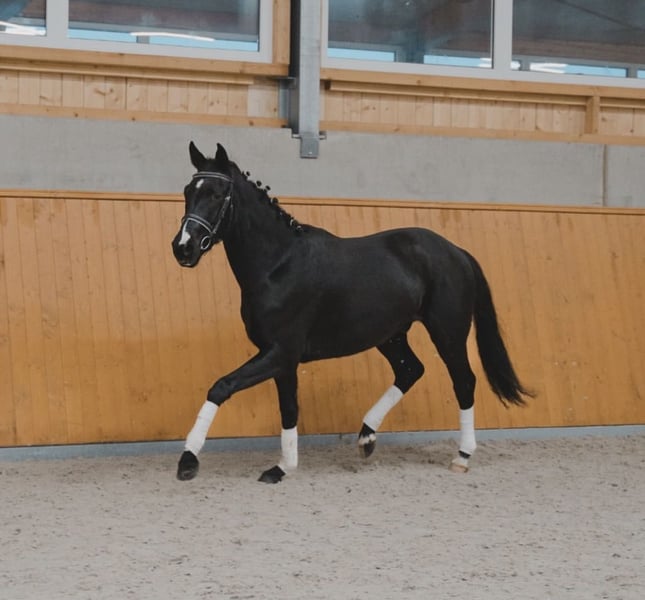 Zum Verkauf steht ein vielversprechender Wallach aus dem Jahr 2023. Ein Sohn des Asgards Ibiza, welcher durch seinen ansprechenden Körperbau und sein herausragendes Potential für den Dressursport überzeugt. Ikarus begeistert durch sein freundliches Wesen, sowie seine Lernbereitschaft. Mit seiner Größe (derzeit 171cm; wird noch größer)und seinen seinen großzügigen Bewegungen zeigt er absolutes Dressurtalent. Er ist ein absolutes Sitzsofa. Ikarus vereint Größe, Präsenz und ein top Wesen. Als Sohn des Topvererbers Asgards Ibiza, verfügt er über beste Voraussetzungen für den Dressursport. Ikarus wurde gesund und pferdegerecht, mit viel Bedacht von uns aufgezogen. Obwohl er Dressur gezogen ist, war er regelmäßig beim Freispringen für eine ganzheitliche Ausbildung. Besonders hervorzuheben ist sein freundlicher, kooperativer Charakter. Er eignet sich für ambitionierte Reiter, die ein talentiertes ruhiges Nachwuchspferd suchen, um gemeinsam den Nächsten Schritt zu gehen. Er ist schmiedfromm , sowie verladefromm. Ikarus ist trotz seines Alters auf dem Weg zum Verlasspferd (auch vorstellbar für Anfänger und Kinder)und wurde auch schon auf Turnieren vorgestellt. Einfach draufsetzen und los reiten. Tüv kann gegen Kostenübernahme gemacht werden. Für eine Proberitt verlangen wir 30€. Videos können auf Anfrage Versand werden.
