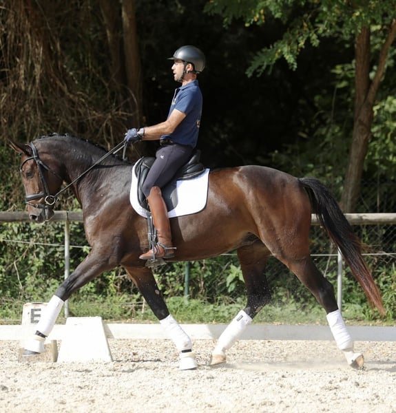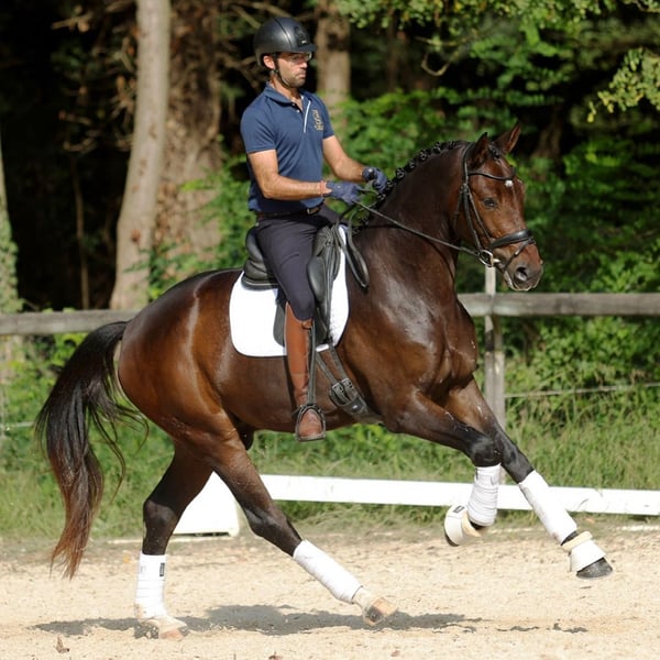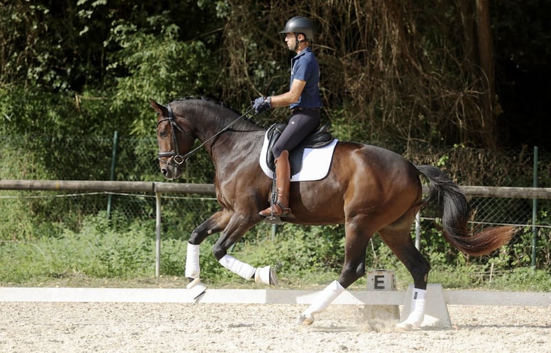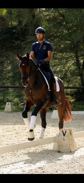 Hannoverian Horse for Sale sired by Secret Are you looking for an exceptional partner for training and competitions? Meet our magnificent Hannoverian gelding, a horse of excellent quality and potential. Details: - Breed: Hannoverian - Sex: Gelding - Year of Birth: 2022 - Color: Dark bay - Height: 16.1 hh - Discipline: Dressage This young horse has been carefully reared by us since weaning and started under saddle in June, demonstrating a great temperament and a willingness to learn. His elegance and fluid movements make him an ideal candidate for dressage. Don't miss the chance to meet this impressive horse. For more information and to arrange a visit, please contact us. X-rays available. He has an exceptional character suitable for all riders except beginners.