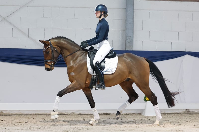In unserer Kollektion stehen streng selektierte Reitponys f�r alle Anspr�che: Ausbildungs-, Zucht- und Kinderponys Hier gelangen Sie zur Gesamtkollektion: https://ponyforum.auction Dieser vierjährige Wallach ist ein kleiner Warmblüter, der sicherlich noch mitten in der körperlichen Entwicklung steht. Eminem ist sicher angeritten und lässt sich ganz entspannt mit anderen Pferden und Ponys gemeinsam in der Halle reiten. Er hat einen lockeren Bewegungsablauf und nimmt seinen Reiter schön mit seinem angenehmen Grundschwung mit. Man kann sich schon gut vorstellen, wie schön harmonisch dieser Youngster mal aussehen wird, wenn er durch formendes Training final bemuskelt sein wird! Auch im Umgang ist Eminem ein ganz abgeklärtes und souveränes Pferd, das sich nicht so schnell aus der Fassung bringen läßt. Das perfekte kleine Damenreitpferd in spe!