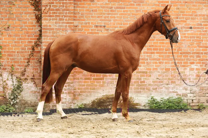 Valente is simply a horse you can't help but love. He is already well-schooled and, after a brief lunging session, you can mount him without assistance and confidently start riding in all three gaits. No matter how busy the riding arena or how much activity there is on the farm, Valente remains a cool and composed “guy” who doesn't get easily flustered. He is already familiar with small riding outings in the outdoor arena, accompanied by a partner horse. He has always been reliable and relaxed in these situations. Valente also knows how to free jump, which seems to bring him joy. With further training, jumping will undoubtedly become a welcome variation for him. Thanks to his excellent riding qualities and his three good basic gaits, he is well on his way to competing in Dressage Horse Class A. His light-footedness, high rider comfort, straightforward nature both in riding and handling make him an ideal youth or amateur horse right now—whether for competitive ambitions or simply for leisure riding at home. With Valente, anything is possible. Good X-ray results are available.