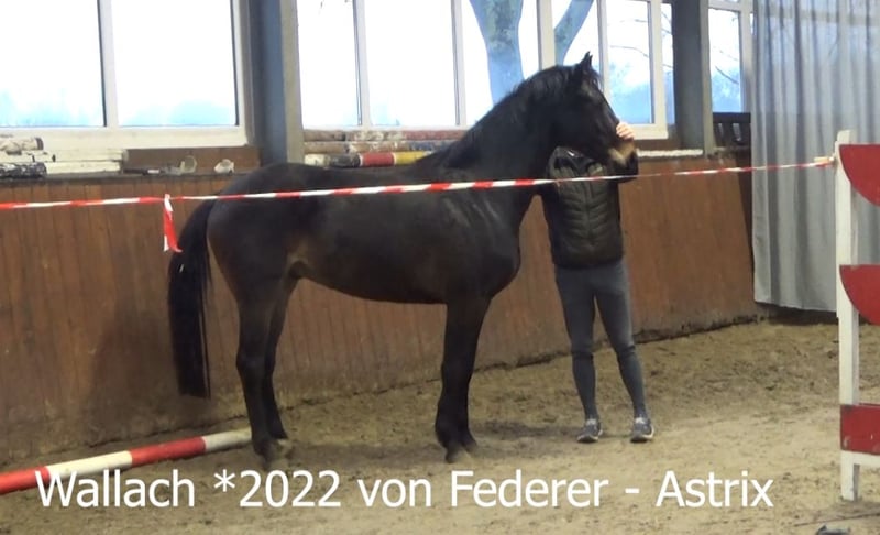 Ten uroczy, roczny wałach z 2022 roku wyrósł w stadzie i jest teraz gotowy na nowe wyzwania. Ze względu na starą, wyleczoną kontuzję na pastwisku oferowany jest w atrakcyjnej cenie. Dostępny jest bardzo dobry przegląd techniczny (TÜV) wraz z 25 zdjęciami rentgenowskimi. Ojciec Federer, dzięki swoim osiągnięciom i wybitnym młodym ogierom, był głównym zwycięzcą nagrody głównej w Związku Oldenburskim. Obecnie ma siedem lat i już odniósł kilka zwycięstw w konkursach na poziomie S-średnim w ujeżdżeniu.