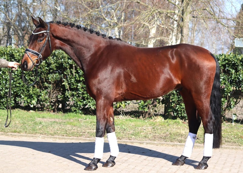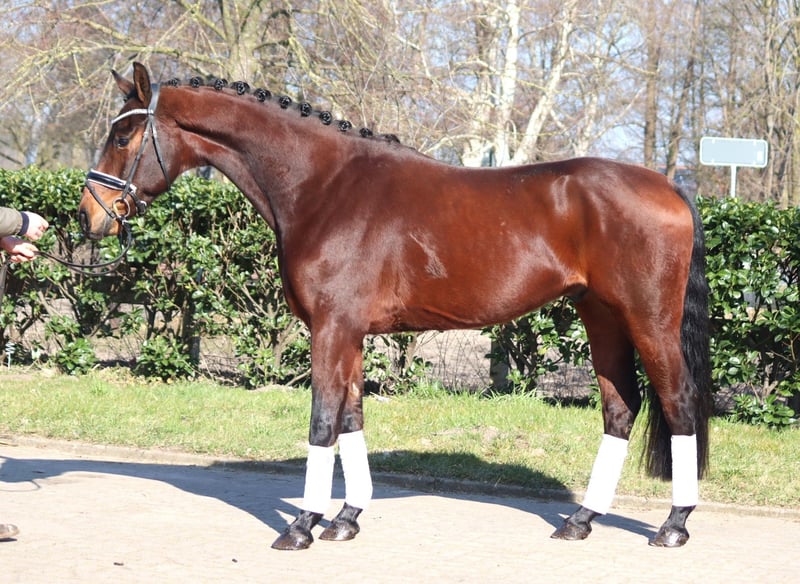 Sympatyczny 3-letni wałach po Vitalis x Fürstenball, z trzema dobrymi podstawowymi chodami. Jest bardzo grzeczny w obcowaniu, obecnie jeszcze nie jest dosiadany. Ze względu na swoje pochodzenie z pewnością ma dobrą zdolność do jazdy i talent do dużego prostokąta. Cena plus VAT. Zapytania tylko telefonicznie, e-maile nie będą odpowiadane.