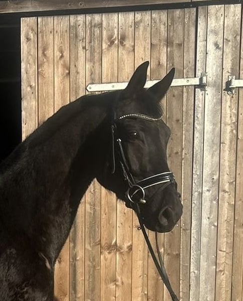 Dieser elegante Rappe besticht durch seine athletische Erscheinung und sein vielversprechendes Bewegungspotenzial. Als typischer Hannoveraner ist er ein aufmerksames Pferd und hat ein freundliches Wesen. Er ist schon an das Reitergewicht gewöhnt, wird aber jetzt aufgrund von Platz- und Zeitmangel verkauft. Mit seiner vielversprechenden Abstammung und seinem ausgeglichenen Charakter eignet er sich ideal für ambitionierte Reiter, die einen zuverlässigen Partner für die Zukunft suchen.