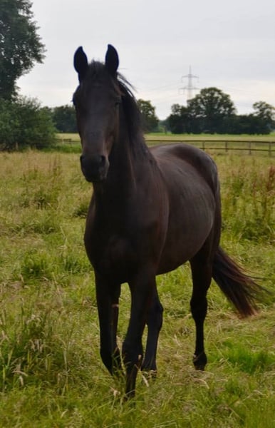 Nuestro "Glow Up" lleva desde finales de agosto bajo la silla y siempre quiere agradar. Es bien educado tanto en el manejo como bajo la silla y tiene ganas de aprender algo nuevo cada día. Tiene un carácter alegre y divertido, siempre dispuesto a hacer bromas. Conoce el círculo de trabajo y el terreno (incluso solo), y ya ha superado un pequeño salto con jinete. Lamentablemente, tiene un informe de radiografía (ver archivo) que es clínicamente normal. Actualmente vive en un paddock de establo abierto, pero también está acostumbrado a la caja con acceso diario a pasto.