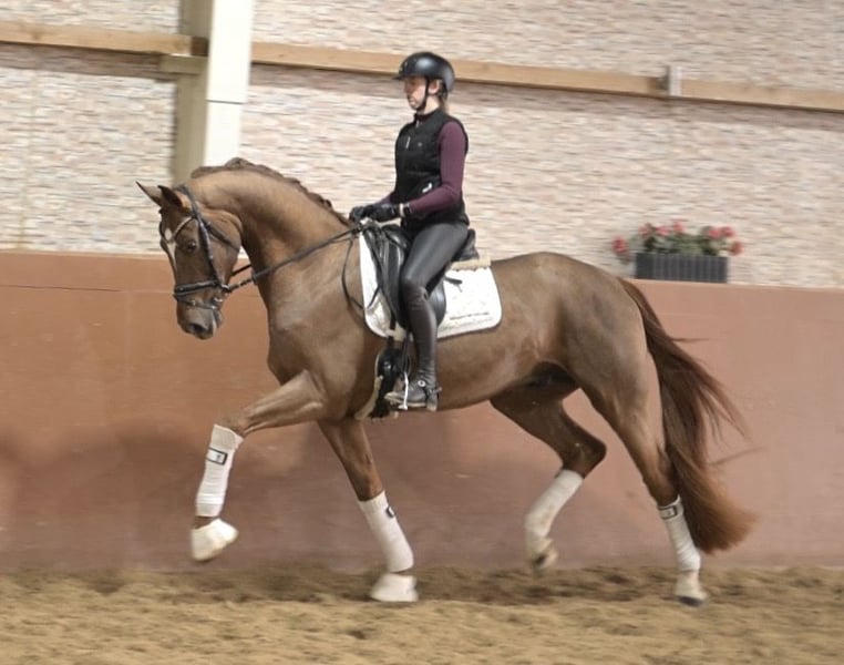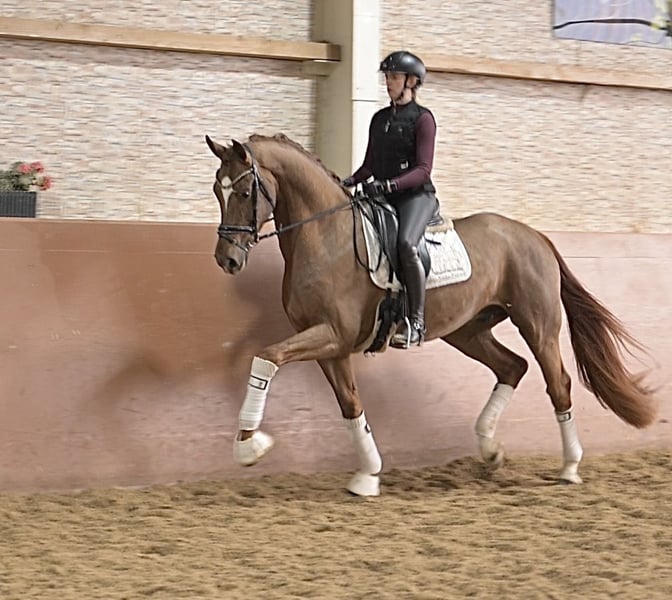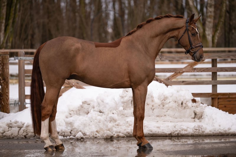 Dear Interested Parties, For appointment scheduling and trial riding, please send me a WhatsApp message. During the day, I am reachable via WhatsApp for further questions, and you can contact me best by phone between 4 PM and 7 PM. I look forward to hearing from you. www.angelina-devittorio.de ⭐️Shutterfly⭐️ Age: 4 years (2022) Height: approximately 16.1 hh Pedigree: Shu Fu x Franziskus Training status: Just backed X-ray: Good radiographs available Shutterfly is a highly talented, stunning young gelding, directly from the breeder, and has grown up in a well-managed, horse-friendly herd. He was gently backed 8 weeks ago. This beautiful, long-legged gelding impresses at first glance with his imposing appearance and excellent quality. Shutterfly possesses an outstanding basic quality, with a particularly active hindquarters. He is developing into a horse of exceptional potential. Very pleasant to ride and responsive in the contact. He is absolutely suitable for amateurs; however, due to his training level, experience with young horses is naturally necessary. Nonetheless, he is already very straightforward and thus highly recommended as an ideal training prospect. ⚜️ Phone: 0171-3438949 ⚜️ a.devittorio@web.de ⚜️ https://www.ehorses.de/angelinadevittorio Facebook and Instagram: Angelina De Vittorio