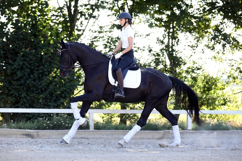 Zum Verkauf steht der 4-jährige Hannoveranerwallach Bélisaire, der eine besondere Abstammung vorweisen kann. Sein Vater Bon Joker ist ein direkter Nachkomme des bewegungsstarken Prämienhengstes Bon Coeur, der nicht nur mit seinem Interieur besticht, sondern auch mit seinem Bewegungstalent, basierend auf den besten Dressurgenen. Bon Coeur gewann den 30-Tage-Test mit einem Endergebnis von 9,1. Mütterlicherseits besticht Bellis Blutlinie mit Sir Donnerhall I, der als fünfjähriger Bundesmeister und Vize-Jugend-Reitmeister wurde. Die deutsche FN-Zuchtbewertung stuft Sir Donnerhall I als einen der besten Vererber von Dressurpferden ein. Auch Belli, der letztes Jahr schonend angeritten wurde und bereits im Gelände war, zeigt bereits sein tolles Interieur, wie es auch sein Großvater vorweisen konnte. Er bewegt sich mit seinen 3 überaus guten Grundgangarten gekonnt unter dem Sattel. Einmal pro Woche nimmt Belli auch am Freispringen teil, wo er viel Spaß zeigt und sein Geschick unter Beweis stellt. Aufgrund seiner Gelassenheit können wir uns Belli auch als Jugend- oder Familienpferd vorstellen. Auch hat Belli bereits seine ersten Turniererfahrungen sammeln können, und sich dabei ruhig und gelassen gezeigt.