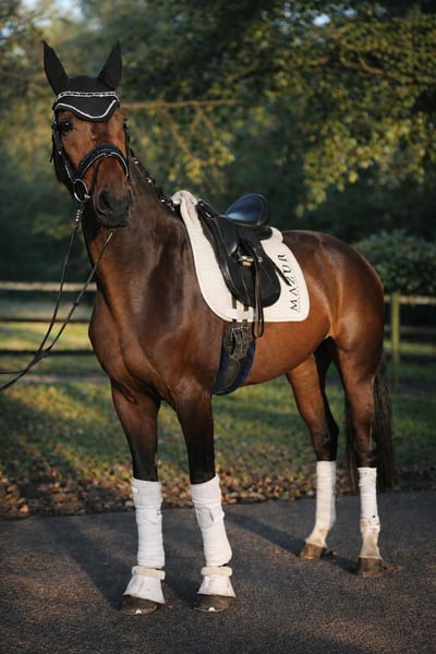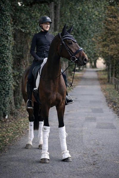 Dressage Prospect with Excellent Pedigree and a Heart of Gold – 4-Year-Old Well-Behaved Gelding for Sale! For sale – directly from the breeder – a stunning 4-year-old gelding with top dressage lineage: Elantic x Sir Donnerhall x Mon Cherie. Standing at approximately 16.1 hh, he combines modern sporthorse looks with the ideal conformation for the dressage arena. He impresses with three above-average fundamental gaits – relaxed, rhythmical, and full of expression. His light-footedness is particularly noteworthy: he enjoys working, is pleasant to sit, and always gives the rider a good feeling. He is reliable in every respect. Character-wise, the gelding is completely trustworthy, calm under pressure, and uncomplicated – both in daily handling and under saddle, he is a true sweetheart. He is well-behaved for the farrier and vet, loads easily, and remains confident and composed in the terrain – even alone. He has already gained experience in young horse classes at competitions, where he presented himself impeccably and confidently. A well-rounded, talented young horse with excellent temperament, ideal for riders seeking a prospect for high-level dressage, who also values a friendly, willing, and resilient partner. Further information gladly provided via WhatsApp or by phone at +49 173 7359633.
