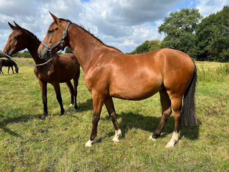 Ładny 4-letni, wstępnie oswojony wałach hanowerski po Carridam x Ricardo Z z własnej hodowli szuka wspaniałego nowego domu. Uważamy, że Cookie (jego przydomek) jest przyjazny, otwarty i związany z ludźmi. Wyrósł w profesjonalnej hodowli w Celle i ma trzy dobre podstawowe chody, został wstępnie oswojony zimą 2024/25 i był bardzo grzeczny pod siodłem. Bardzo dobra linia górna, ładne umaszczenie. Również skakał swobodnie i robi to ostrożnie oraz z talentem. Jest towarzyski, bezproblemowy i nieustraszony. Zna kowala, transport, weterynarza. Oczywiście był regularnie odrobaczany, szczepiony i miał kontrolowane zęby. Przebywa w dużej stadzie na letnim pastwisku nad rzeką Weser, gdzie można go zobaczyć. Wierzymy, że będzie wspaniałym partnerem w skokach, wszechstronności oraz ujeżdżeniu, najlepiej dla średniej wielkości jeźdźca. Obecnie ma około 160 cm wzrostu w kłębie, dobrze pokrywa się ze względu na swoją budowę. Idealny również jako koń dla osoby przechodzącej na wyższy poziom. Niestety musimy się z nim rozstać z powodu braku czasu. Jego starsza siostra również ma bardzo bezproblemowy charakter, jest nieustraszona i utalentowana w każdej dyscyplinie. Oddawany tylko w dobre ręce!
