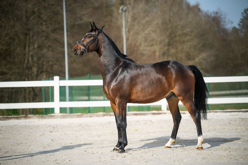 Âge / sexe : 4 ans, hongre Taille petite – idéal pour un cavalier plus léger Origine : Friedrich der Grosse × Don Frederico Caractère : très gentil, calme, pas peureux Mouvements corrects, trois allures égales Utilisation : préparé pour le travail en dressage, excellent pour une formation ultérieure État de santé : examens vétérinaires et vaccinations à jour, sous soins réguliers du maréchal-ferrant Potentiel sportif – ouvert à une formation supplémentaire. Je vous invite à venir voir le hongre en personne – vous tomberez amoureux de son caractère agréable et de son travail subtil sous la selle !