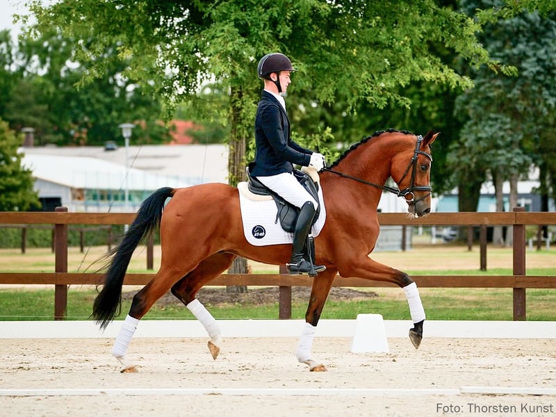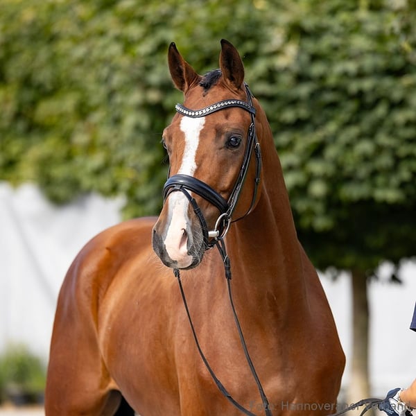 Bo Cinnamon ist eine erstrangige Dressurspitze mit vorzüglichen Grundgangarten. Er formt sich blendend und strebt aufgrund der optimalen Begabung das große Viereck an. Großmutter Woman on Top O stellt die beiden gekörten Hengste Fürstenherz v. Fürstenball und Frisco v. Fürstenball sowie fünf weitere Nachkommen, die erfolgreich im Sport sind, darunter ein Sohn des Sarkozy (DRE: S-erfolgreich mit Kahra Alena Baumann). Sportname: Best Selection G 2. Generation Sportpferde Dressur: Fürstenwelt v. Fürst Nymphenburg (DRE: S* mit Sabrina Geßmann); Saint Laurent 5 v. Sarkozy (DRE: S* mit Kahra Alena Baumann,FoVA 2012). Aufbauprüfungen Dressur: gek. Hengst Fürstenherz/v. Fürstenball v. Fürstenball (DRE: M mit Nina Kudernak,Verden 2013,HM 2013); gek. Hengst Frisco/Frisco 174 v. Fürstenball (DRE: L,Verden 2014). Auktionspferde: Lorca/v. Lemony´s Nicket v. Lemony's Nicket (VA 2015). Bes. Prämientöchter: StPr Starlight O v. Stedinger (Louis Wiegels-Schau Sandbostel 2008). 3. Generation Sportpferde Dressur: gek. Hengst Sean Connery/Sean Connery 5 v. Sir Donnerhall I (DRE: Grand Prix mit Therese Nilshagen,Dressurpferdeprfg. Kl.M Bundeschampionat 6 jährige 2013,Bundeschampionat f. Reitpferde 2010,Vechta 2010,VA 2009: 195.000 €); Her Highness O/Her Highness O. v. Hohenstein (DRE: S*** mit Signe Kirk KRISTIANSEN,GPS - Grand Prix Special 2020,GP - Grand Prix 2020,GPS - Grand Prix Special 2019,GP - Grand Prix 2019,GPS - Grand Prix Special 2019,GPS - Grand Prix Special 2019,GPS - Grand Prix Special 2019,GPS - Grand Prix Special 2014,GPS - Grand Prix Special 2014,GP - Grand Prix 2014,FEI Grand Prix Special 2014,FEI Grand Prix 2014); v. Sandro Hit (DRE: S** mit Kate COWELL); Donner O v. Don Schufro (DRE: S* mit Frank Lange); Sean Connery 8 v. Sir Donnerhall I (DRE: S* mit Sascha Schulz,Championat f. Reitpferde 2014); Fille d´amour GMO v. Festus GMO (DRE: M** mit Anna Font); Blind Date O v. Bordeaux (DRE: M** mit Lea Haß); HannPr Donna Valentina/Donna Valentina O v. Don Schufro (DRE: M* mit Frank Lange); Bel Ami O v. Bordeaux (DRE: M* mit Sonja Steves). Sportpferde Voltigieren: Fenia/Fräulein Flori v. Fürst Romancier (Voltigieren: S* mit VG Breitenburg I). Aufbauprüfungen Dressur: Merlin 1896 v. Morricone I (DRE: L); gek. Hengst World Diamond O/v. White Star v. White Star (DRE: L,Verden 2000). gekörte Hengste: gek. Hengst Weltjunge/Weltjunge v. Weltmeyer (Vechta 2000). Auktionspferde: Sean Connery III v. Sir Donnerhall I (VA 2022,FoVA 2018); Vollmond O/v. Vitalis v. Vitalis (VA 2020); Donnerspon v. Don Frederico (FoVA 2008). Bes. Prämientöchter: HannPrA Frieda CS v. For Romance I; StPr Snap Dragon v. San Amour I; StPr Scarlett O/She's a Lady O v. Stedinger; StPr Weltmädchen O v. Weltmeyer; StPr Highlight O v. Hohenstein; StPr World Dream O/World Dream O v. White Star; StPr River Queen O v. Rotspon (Ratje Niebuhr-Schau Verden 2002); StPr Wild Lady O v. Weltmeyer. 4. Generation Sportpferde Springen: gek. Hengst Friesenstern/Friesenstern 1 v. Wanderer (SPR: 1,30 m mit Annika Jagels,Verden 1989). Aufbauprüfungen Dressur: Malu/Malu 5 v. Matcho (DRE: L). Bes. Prämientöchter: StPr Matcho's Girl O v. Matcho. 5. Generation Sportpferde Dressur: StPrA Wiventy v. Wittinger (DRE: M** mit Olaf Nowak,VA 1999). Sportpferde Springen: Matcho King v. Matcho (SPR: M mit Veser,Claus). Aufbauprüfungen Dressur: Louis Feraud v. Lemon Park (DRE: L,VA 1995). Bes. Prämientöchter: StPr Prestige v. Pik König. Mutter: Great Woman G Prämierung: 1xIa. ZL: 5/3 Großmutter: Woman on Top O ZL: 14/12 Das Pferd ist ein Verdener Auktionspferd und wird am 25.01.2026 online versteigert. Vom 12.01. bis zum 25.01. kann das Pferd jeden Tag beim öffentlichen Training besichtigt und ausprobiert werden. Das Startgebot bei der Versteigerung ist 8.000 Euro.