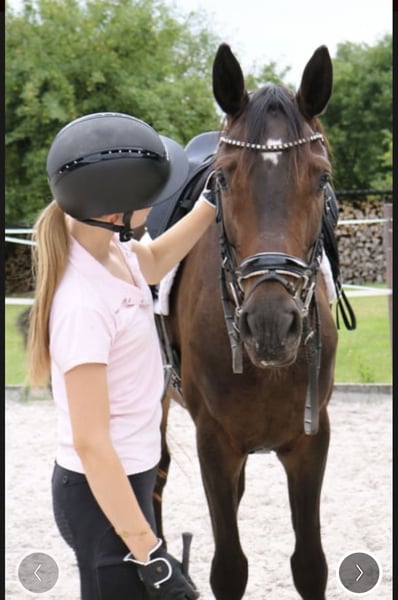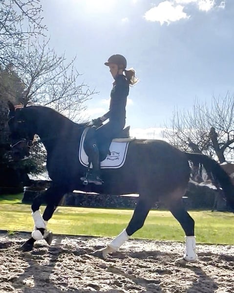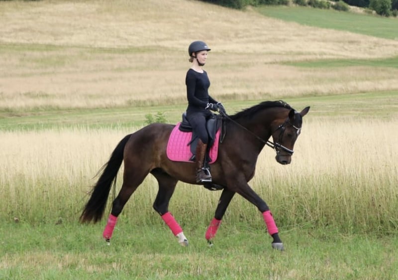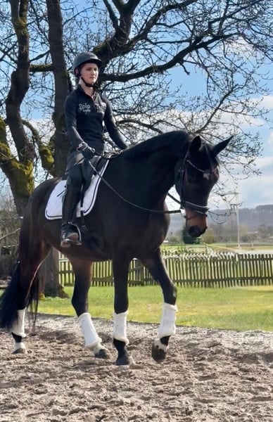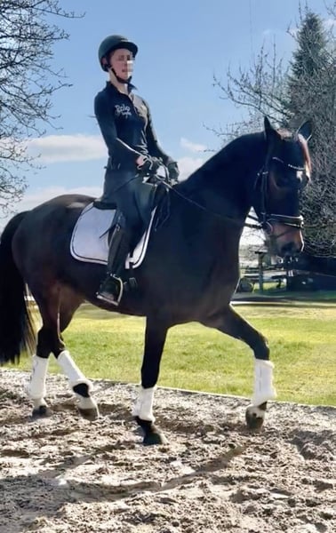 Rundum TOLLES REITPFERD für Dressur, aber auch Freizeit und Gelände direkt vom Züchter, aus 1. Hand ist er 4j. schonend angeritten aktuell auf dem Weg zur L-Dressur. Bernie hat 3 sehr gute GGA, top Schritt, schöner SCHWUNG im Trab, schön aktives HINTERBEIN und damit PERSPEKTIVE für deutlich mehr. Tolles Reit / Sitzgefühl. Der Vollbruder seiner Mutter war Elite-Auktionspferd und lief erfolgreich S*-Dr. die 4*S- Dr.Stute Schöne Scarlett ist aus der Londonderry- Großmutter, weitere erfolgreiche Dressurpferde aus dem Stamm.. Aufgrund seines Charakters und seiner Arbeitseinstellung ist er auch ein ideales AMATEUR- oder Umsteigerpferd oder auch für ÄLTERE/n Reiter/in- seine Mutter wurde auch nach Ende als Zuchtstute an 70j. Dame in die Schweiz verkauft... rundum problemlos im täglichen Umgang, NETT mit allen anderen Pferden, sehr anhänglich, zutraulich, den muß man einfach LIEBHABEN durchweg robust in Haltung, Weide, Futter läuft derzeit noch problemlos ohne Eisen Herzlich Willkommen Bernie kennen zu lernen !
