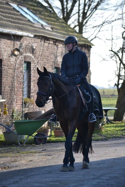 Schicker 5jähriger Wallach „Finn“ von For Gold x Stanford x Don Bosco aus privater Zucht zum Verkauf. Mit Vater For Gold (Steffi Wolf) und Muttervater Stanford (Steffi Wolf und Dorothee Schneider) stehen zwei ehemalige WM Finalisten im Pedigree. https://www.horsetelex.nl/horses/pedigree/2205009/finn Mutter Siena ist im Hannoveraner Pr St. PHD aufgenommen. Finn zeigt sich sehr unkompliziert und ist auch von Fremdreitern in allen drei GGA gut zu reiten. Wir sind sehr zufrieden mit seiner bisherigen Entwicklung, seine guten GGA und seine Lernfähigkeit zeichnen Finn aus. Für sein Alter zeigt er sich beim Reiten/ Springen/Longieren und im Umgang sehr brav und unerschrocken. Springen/ Freispringen und Stangentreten machen ihm richtig Spaß! Finn kennt In- sowie Outdoor Bewegung und ist vertraut mit Verladen. Er macht auch gerne einen Ausflug in ländlicher Umgebung, alleine sowie in der Gruppe. Finn geht problemlos in der Führanlage und hat keine Angst vor Wasser. Guter Züchter TÜV vom 17.11.2022 vorhanden ( 19 R. Bilder). Zahnbehandlung Oktober 2023 und August 2024 und Februar 2025 sowie Januar 2026. Finn wird regelmäßig geimpft und entwurmt, auch ist er regelmäßig beim Schmied (Barhufer). Er sucht jetzt seinen Reiter, der ihm die nötige Zeit gibt zu reifen um sein volles Potential auszuschöpfen. Momentan wird Finn in Dressur und Springen gefördert. Er liebt Entspannungsrunden im Gelände nach der Arbeit. Finn ist in 2025 2 Dressurpferdeprüfungen A gestartet und wird aufgrund seiner Springveranlagung in naher Zukunft an Springprüfungen teilnehmen. Gerne vereinbaren wir wenn gewünscht einen Termin zur Vorstellung bzw. Ausprobieren. Video bei Interesse auf Anfrage.