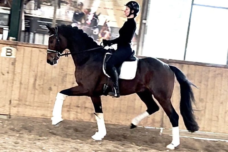 CHEVAL DE DÉVELOPPEMENT SYMPATHIQUE - BEAUCOUP DE QUALITÉ ET CHARACTÈRE DE RÊVE - STERILISÉ ET TESTÉ EN PERFORMANCE - MULTIPLEMENT PLACÉ EN REITPFERDE ET DRPF A AVEC DES NOTES JUSQU'À 9,0 - PROVENANT DE ZG WERTH - AVEC UN GRAND POTENTIEL POUR LE GRAND CIRCUIT - IDÉAL POUR LES JUNIORS ! Nous proposons à la vente, en représentation du propriétaire, ce hongre de 172 cm, bai foncé, âgé de 5 ans, inscrit et performant (Hannover, Oldenburg, Mecklenburg), véritable artiste du mouvement. Il est issu de BLUE HORS ZACKERY x FÜRST WILLIAM OLD, et son pedigree laisse espérer un avenir prometteur. Il est utilisé pour la reproduction, mais peut également être vendu pour la monte par l’acheteur. "ZACKHAM" impressionne dès le premier regard. Avec sa silhouette harmonieuse, sa grande hauteur moderne dans le type de sport moderne, son visage magnifique et son caractère sympathique, il attire immédiatement tous les regards. Dès qu’il se met en mouvement, il devient évident que ce cheval possède un potentiel exceptionnel, associé à une angulation qui laisse déjà entrevoir un futur cheval de Grand Prix. Elastique, libre dans l’épaule, avec puissance, mécanique, arrière-main, impulsion, attitude vers le haut et capacité de portance. Tout cela provient d’un arrière-train très bien angulé et actif, transmettant le mouvement à travers le dos ondulant, avec une bonne prise de volume, dans un mouvement vers le haut, tout en conservant une épaule magnifique et libre. "ZACKHAM" est en formation depuis son débourrage sous la conduite d’un entraîneur professionnel et travaille déjà au niveau de Dressurpferde L, avec des exercices tels que changements de pied volés et travers. Il montre également beaucoup de talent dans le travail ludique avec des demi-passes. Son palmarès est remarquable : il est non seulement inscrit, mais aussi placé à plusieurs reprises en Reitpferde et Dressurprüfung A, et a passé avec succès le test de performance (VA court). Un certificat vétérinaire récent, comprenant un examen clinique et des radiographies standards (corps, cervicales, dos), est disponible. Après l’achat, "ZACKHAM" pourrait également rester en notre possession en formation professionnelle pour un développement supplémentaire et une présentation en concours, y compris à l’échelle internationale FEI.