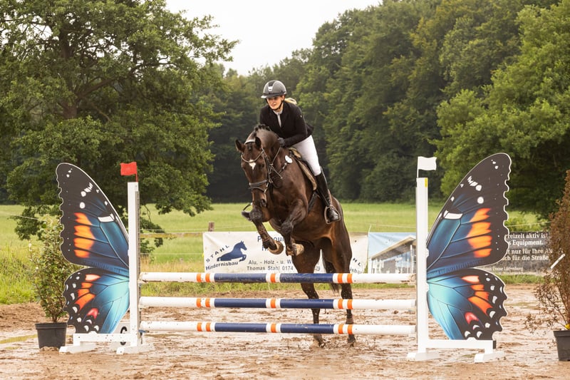 Dieser vielversprechende 4-jährige Wallach überzeugt mit Qualität und einer bemerkenswerten Einstellung. Bereits jetzt kann er Erfolge im Parcours vorweisen: Springpferde A gewonnen und in Springpferde L platziert. Im Umgang zeigt er sich bei uns stets brav, menschenbezogen und unkompliziert. Unter dem Sattel präsentiert er sich angenehm zu reiten, motiviert und stets bemüht, es seinem Reiter recht zu machen. Beim Springen besticht er mit Übersicht, Vermögen und dem unbedingten Willen, immer sicher auf die andere Seite zu kommen. Geländehindernisse meistert er mit Leichtigkeit und Spaß. Dressurmäßig ist er bereits solide auf gutem A-Niveau ausgebildet und beherrscht fliegende Wechsel. Ein ideales Pferd für ambitionierte Reiter, die einen leistungsbereiten, gut ausgebildeten Youngster mit viel Herz und Zukunftsperspektive suchen. Bei Interesse bitte ausschließlich telefonisch melden 015237351947