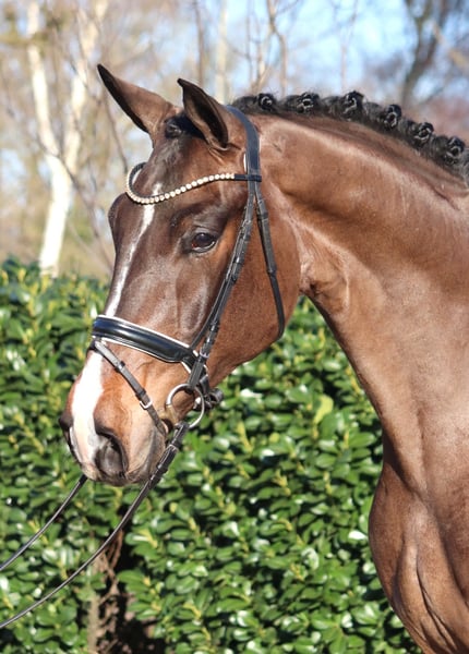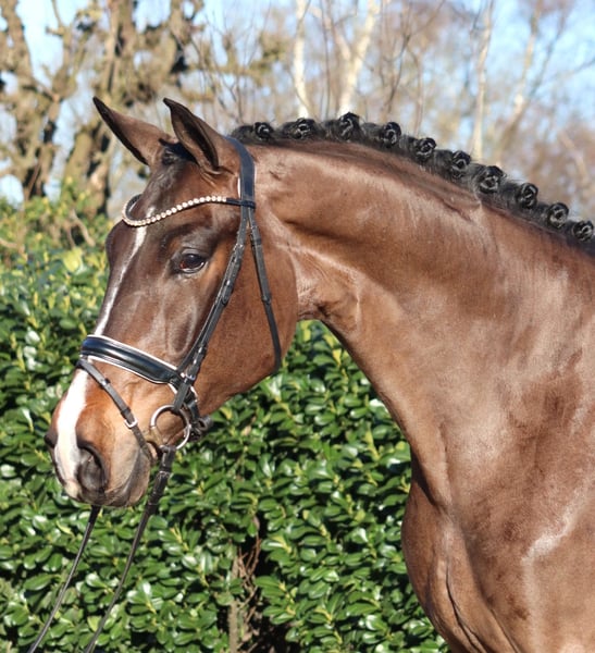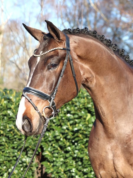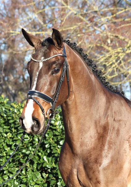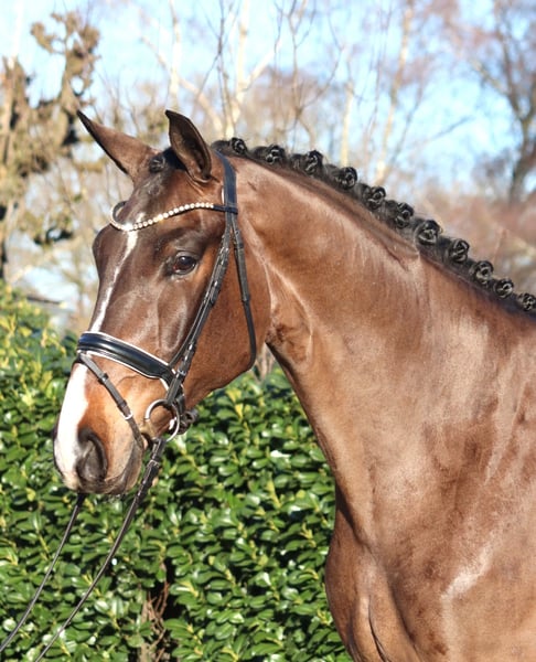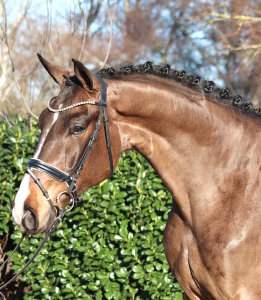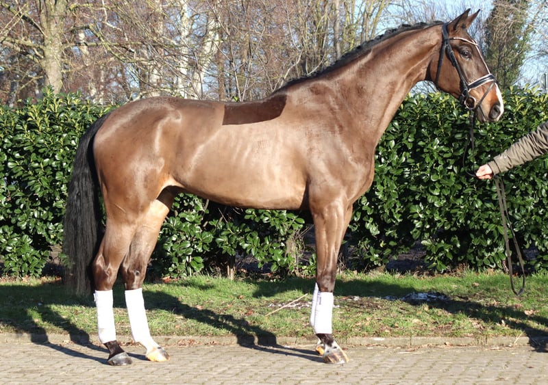 Large-frame 5-year-old gelding by Jovian x Floriscount, exhibiting three very good basic gaits. He is well-behaved in handling and a pleasure to ride. He has all the prerequisites for the grand prix arena. Directly from the breeder for sale. Price plus VAT. Inquiries only by phone; emails will not be answered.