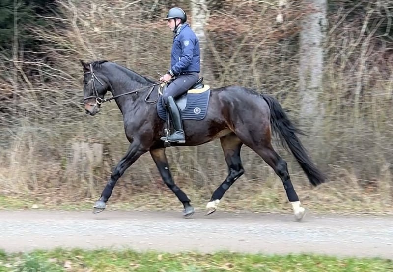 Zum Verkauf steht ein eleganter Hannoveraner Wallach, geboren im Jahr 2021, mit einem beeindruckenden Stockmass von ca. 178 cm. Mit seiner modernen Erscheinung, seinem harmonischen Körperbau und seinem ausdrucksstarken Bewegungsablauf bringt er beste Voraussetzungen für eine erfolgreiche Zukunft im Reitsport mit. Der junge Wallach wurde im vergangenen Jahr schonend angeritten und befindet sich nun am Anfang seiner weiteren Ausbildung. Bereits jetzt zeigt er viel Elastizität, Takt und natürliche Balance in den Grundgangarten. Besonders im Schritt und Galopp überzeugt er durch seine Bewegungsqualität und seine gute Mechanik. Neben seinem sportlichen Potenzial besticht er durch einen ehrlichen, ausgeglichenen Charakter und eine hohe Lern- und Leistungsbereitschaft. Er arbeitet motiviert mit und präsentiert sich im täglichen Training als angenehmer und verlässlicher Partner. Seine Rittigkeit und seine positive Einstellung machen ihn zu einem vielversprechenden Nachwuchspferd für ambitionierte Reiter. Mit seinem kräftigen, gut proportionierten Körperbau, der grossen Schulterfreiheit und seiner natürlichen Bergauftendenz bietet er ideale Voraussetzungen für die weitere Förderung im Dressursport und ggf. im Springsport. Bei Interesse freue ich mich über Ihre Kontaktaufnahme und stelle gerne weitere Informationen, Videos oder eine Möglichkeit zur Besichtigung zur Verfügung.