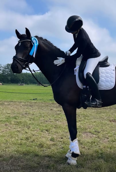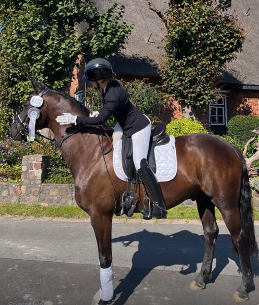 Zum Verkauf steht dieser beeindruckend schöne 6-jährige Hannoveraner Wallach mit bester Dressurabstammung von Quantensprung und Rohdiamant. Quebeck ist ein echter Blickfang! Er überzeug optisch durch seine hübsche Erscheinung und sein sehr gutes Interieur. Auf Tunieren wurde Quebeck von seiner Besitzerin vorgestellt und konnte etlichliche Platzierungen sammeln. Auf sein Konto gehen unter anderem zwei A** Siege, sowie der zweite und vierte Platz. In A Prüfungen sicherte er sich in den letzten zwei Jahren ebenfalls zahlreiche A Platzierungen. Auf den Tunieren zeigte er sich jederzeit nervernstark und ambitioniert. Quebeck verfügt über eine fundierte Ausbildung . Er ist fein an den Hilfen und bringt viel Talent für die weitere Förderung im Dressursport mit. Er verfügt über drei sehr gute Grundgangarten und ist im taglichen Umgang ein absoluter Schatz. Er liebt es betüddelt und geschmust zu werden. Beim Putzen, Satteln, Führen und Longieren ist er stets artig. Auf der Weide und dem Paddock ist er sehr verträglich und sozial. Ein umfangreicher großer Tüv mit Röntgenbildern + Rücken, sowie ein aktueller klinischer Stand liegen vor. Zähne wurden dieses Jahr im Oktober gemacht. Quebeck ist Schmiede- und Verladefromm. Wir wünschen uns ein liebevolles, pferdegerechtes Zuhause, in dem er weiter gefördert wird.