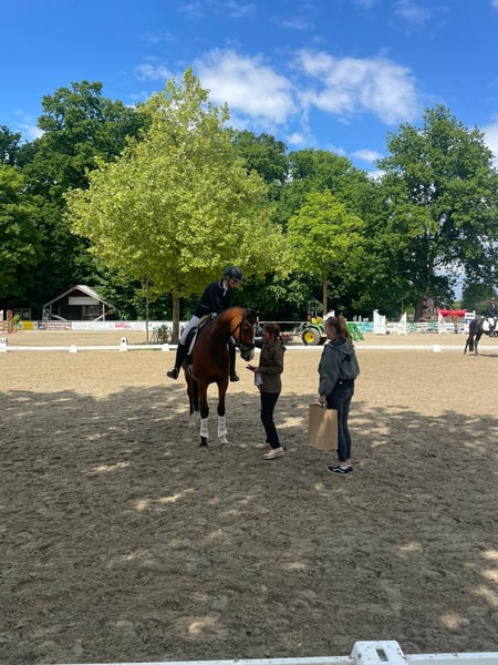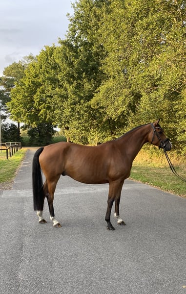 Dieser charmante 6-jährige Wallach, ca. 1,67 m groß, von Millenium x Lissabon xGaribaldi II x Diskant steht zum Verkauf aus direkter Züchterhand. Dies ist der Stamm des 3-fachen Bundeschampion "Lissaro van der Helle". Er hat diese Saison A-Dressur gewonnen und ist L-Dressur mehrfach hoch platziert. Hier handelt es sich um einen richtigen Allrounder, der im Viereck immer wieder glänzt, aber auch alleine/in der Gruppe ins Gelände geht, sowie über Stangen- und Geländesprünge springt. Dabei ist er stets gelassen, leichtrittig und motiviert. Deshalb eignet er sich auch super als Umsteigerpferd mit dem man direkt durchstarten kann. Aufgrund von einem Röntgenzufallsbefund im TÜV ist er deutlich unter seinem Wert zu verkaufen. Er hat im Alltag keinerlei Einschränkungen durch den Befund. Reitvideos und Röntgenbilder können auf Anfrage gerne verschickt werden. Bei Interesse freuen wir uns über eine Nachricht.