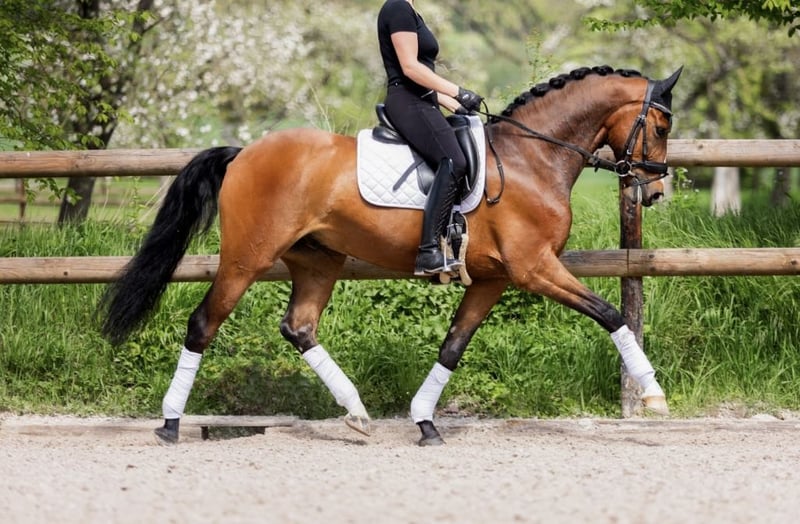 Five-year-old Hanoverian gelding by Fürst Belissaro out of a Spörcken mare, available for sale into caring hands. The gelding currently measures approximately 16.1 hh. He has won a riding horse test and has been multiple times placed in dressage class A competitions. He also jumps small courses. Both in handling and under saddle, he consistently proves to be well-mannered and easy to manage. He has an excellent work ethic and learns quickly. Trail riding, unfamiliar environments, farrier visits, and loading are no problem. Additionally, he is very sociable with other horses. A comprehensive pre-purchase examination from June 2024 shows no findings. Videos can be sent upon request. Available by phone at 0172 3535987. Location: Havixbeck
