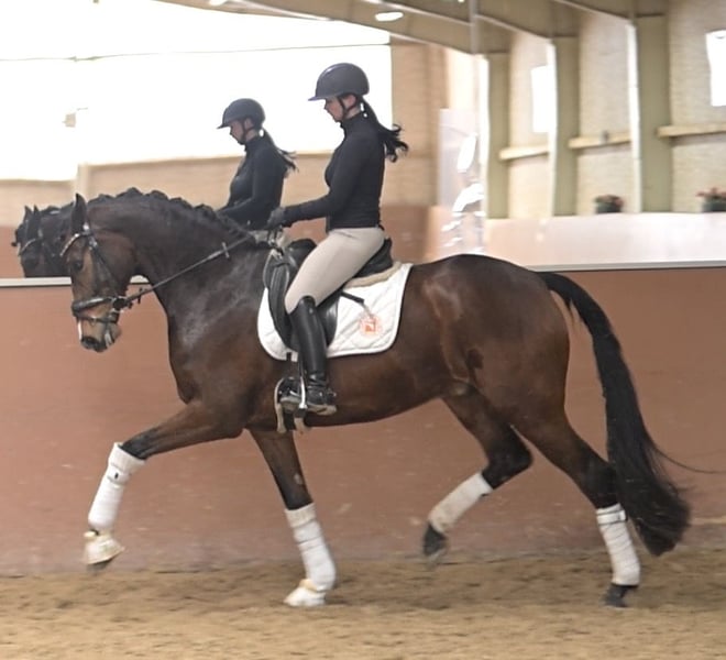 Dear Interested Parties, Please send me a WhatsApp message to arrange a viewing or trial ride. For further questions, I am available during the day via WhatsApp, and you can reach me best by phone between 4 pm and 7 pm. I look forward to hearing from you. www.angelina-devittorio.de ⭐️Fridolin⭐️ Age: 6 years (2020) Height: approx. 16.1 hh Lineage: Fürst Belissaro x Don Index Training level: Multiple placements in Dressage Horse Class A X-ray: Good radiographs available Location: Ludwigsfelde Presented in a stallion-like appearance and showcasing impressive beauty, this six-year-old gelding by Fürst Belissaro out of a Don Index mare exudes elegance. Currently competing at Dressage Horse L level, he impresses as a highly talented young horse that has been trained gently and horse-appropriate, bringing joy every day. He has been placed multiple times in Dressage Horse A and has shown calmness and composure even at competitions. He is now in training at Dressage Horse L level. With his very clear-headed and gentle nature, he is a promising young horse that will be a pleasure for his trainer both in training and everyday handling. He consistently proves to be uncomplicated, brave, and of a lovable character; he is also a true sweetheart in handling. His fundamental quality across all three basic gaits is very good, and he has all the qualities to shine in the big arena in the future. With his beautiful appearance and a clear mind, he is developing into a young horse of exceptional quality. Thanks to his very easy-going character, he is absolutely suitable for amateurs and ideally suited for any rider with young horse experience. He will not be sold to inexperienced hands or beginners. Only to a dedicated rider with appropriate horse experience. ⚜️Phone: 0171-3438949 ⚜️a.devittorio@web.de ⚜️https://www.ehorses.de/angelinadevittorio Facebook and Instagram: Angelina De Vittorio