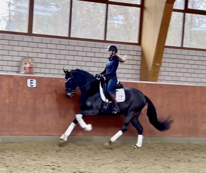 EscaHit is a stunning Hanoverian gelding who combines expressive movement, rideability, and a naturally uphill build with a bright future in dressage. Bred for talent and produced carefully, he is a horse with all the raw quality to develop into a serious competitor for a rider looking to bring along a young partner. Training & Show Experience EscaHit has been thoughtfully started and correctly developed. He has shown locally at First Level with success and is confidently schooling movements from Second and Third Level, including counter canter, half pass, and flying changes. His gaits are expressive yet comfortable to sit, with a particularly elastic trot and a canter that shows excellent potential for collection. His foundation of training is solid, and he is now ready to continue progressing with a rider who wants to put the finishing touches on a talented young horse. Temperament & Rideability EscaHit is best described as a sensitive yet willing partner. He thrives with a rider who is tactful, confident, and appreciates a forward-thinking horse. While he is naturally energetic, he is always generous and tries to understand what is being asked of him. His kind personality makes him a joy to work with on the ground, and he is as easy to handle in the barn as he is elegant under saddle. Contact us today for price, video, and further details.