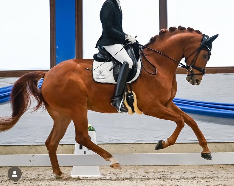 Dreamy Hanoverian Gelding** For sale is an impressive Hanoverian gelding, born in 2020. With a height of 171 cm and his beautiful chestnut color, he attracts all attention. This talented gelding is well-suited for dressage and is already showing promising progress in his training. He impresses with his elegant movement and his friendly, balanced temperament. He is well-mannered, well-educated, and suitable for both experienced riders and ambitious riders looking for a promising horse for the future. Achievements: Young horse competition won with over 81%. If you are interested or need further information, please feel free to contact me. Don't miss this opportunity to find such a wonderful partner!