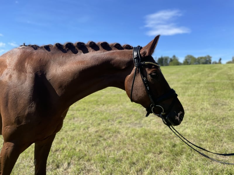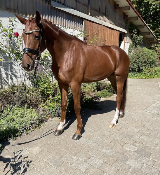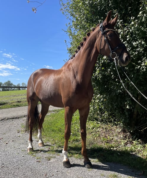 Eleganter Wallach von Dimagico – talentiert, rittig und freundlich im Umgang Zum Verkauf steht ein ausdrucksstarker, 6-jähriger Wallach mit einem Stockmaß von ca. 1,74 m, abstammend von Dimagico aus einer Lauries Crusador xx-Mutter. Dieser moderne, langbeinige Youngster überzeugt nicht nur mit seinem auffälligen Exterieur, sondern auch mit drei überdurchschnittlichen Grundgangarten, hervorragender Rittigkeit und einem stets positiven, menschenbezogenen Charakter. Er ist bereits mehrfach hoch platziert in Dressurpferdeprüfungen der Klasse A und L. Über den Sommer wurde er behutsam und spielerisch an erste Lektionen der Klasse M herangeführt und zeigt dabei viel Talent und Lernbereitschaft. Ein ideales Nachwuchspferd für den ambitionierten Reiter der ein Pferd mit Perspektive sucht.