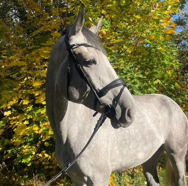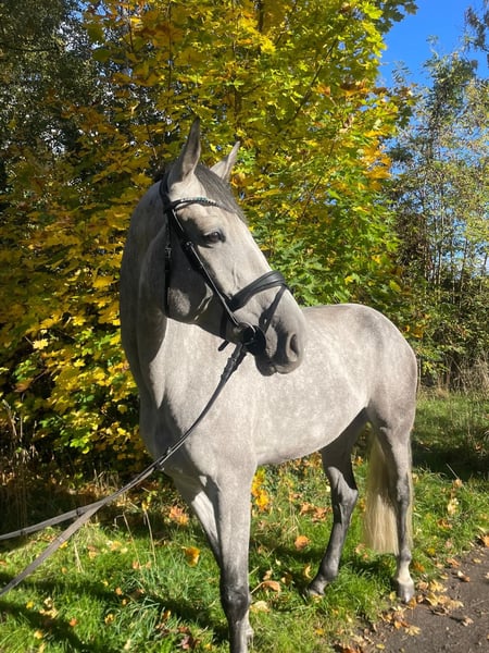 Elegancki 6-letni wałach Hannoveraner z doskonałym pochodzeniem i potencjałem na sprzedaż. Wysokość około 185 cm. Diacontinus x Chilento x Coriano Od dwóch lat w moim posiadaniu, zaczął być jazdy w wieku 4 lat, jednak ze względu na brak czasu nie był jeszcze w pełni rozwinięty. Jest łagodny w jeździe, ale nadal na początku swojej drogi i wymaga dalszej pracy oraz konsekwentnej edukacji. Ponieważ nie mam już czasu na jego dalszy rozwój, a dla mojej córki jest zbyt mocny, decydujemy się na sprzedaż. Ze względu na wiek i wzrost nie jest to koń dla początkujących jeźdźców. Test jazdy możliwy tylko dla doświadczonych jeźdźców. Zdjęcia rentgenowskie z 2023 roku dostępne. W jesieni 2023 miał operację wszczepienia implantu. W kontaktach jest spokojny, bardzo łagodny, nie boi się podkuwania i załadunku. Pod siodłem, mimo swojego wzrostu, jest bardzo wrażliwy.