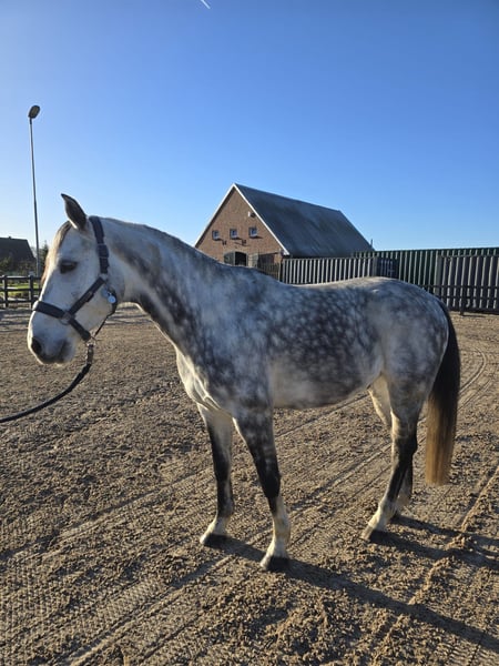 Herzenspferd sucht seinen Menschen! * Abstammung: Caressini x Diacontinus * Stockmaß: ca. 1,58 m * Alter: 7-jährig (2019) Wir sind auf der Suche nach einem passenden Zuhause für unseren Hannoveranerwallach "Champ". Champ ist ein zuverlässiger Partner und für jeden Spaß zu haben: Dressur, Springen, Longieren, Ausreiten, Bodenarbeit oder Reiten ohne Sattel - er zeigt sich stets brav und genießt die Abwechslung. Im Umgang ist er unkompliziert und steht geduldig beim Putzen, Satteln und Trensen. Er ist A-platziert im Springen und springt im Training bis zur L-Höhe. Auch im Gelände zeigt er viel Freude an Naturhindernissen. Durch sein ausgeglichenes Wesen und seine eher ruhigere Art kann Champ auch mal mehrere Tage frei haben und lässt sich anschließend wieder problemlos reiten. Wir könnten ihn uns sehr gut als Pferd für Wiedereinsteiger, als Familienpferd oder als Herzenspferd für ein junges Mädchen vorstellen, die ihn mit Unterstützung weiter liebevoll ausbilden möchte. Nach einer kleinen Winterpause (1,5 Monate) wird er nun langsam wieder antrainiert. Champ lebt bei uns im Herdenverband (tagsüber ca. 10 Stunden auf der Weide mit Stuten und Wallachen) und steht nachts in der Box. Er läuft barhuf, ist geimpft, wird regelmäßig entwurmt und dem Schmied vorgestellt. Wir suchen für Champ ein echtes "Für-immer-Zuhause", wo er als Familienmitglied gesehen wird und abwechslungsreich beschäftigt werden kann. Bei Interesse freuen wir uns über eine Nachricht von dir! Gerne per WhatsApp: 0176 45857615 Weitere Fotos und Videos vorhanden.