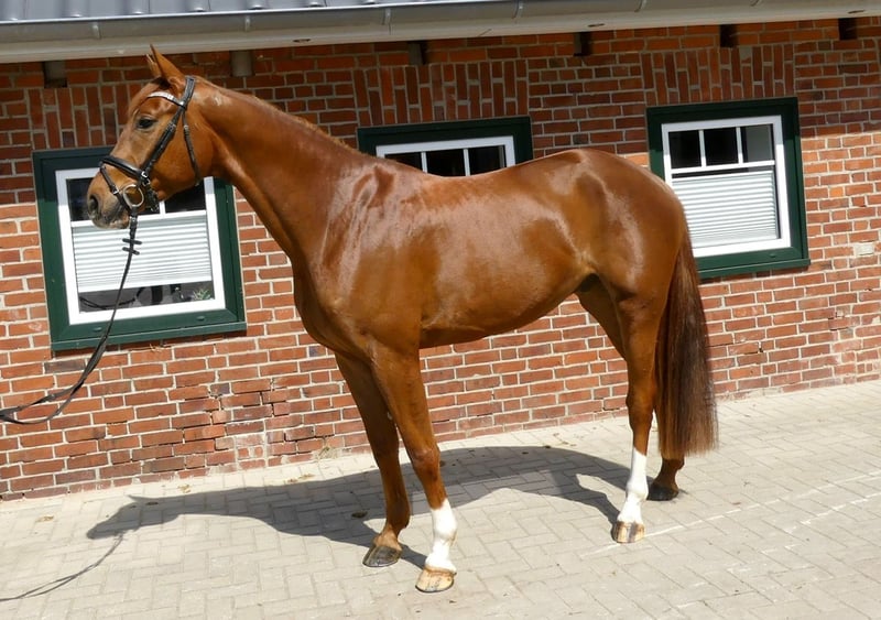 En magnifik Oldenburg-valack född 2019 är till salu. Med sin slående mörka kastanjefärg är han ett riktigt blickfång och imponerar med sin elegans och imponerande utseende. Han är 167 cm lång och visar alltid sin bästa sida. Hans stamtavla och karaktär gör honom till en idealisk partner för ambitiösa ryttare. Denna unga valack har utmärkta grundgångarter och är alltid villig och motiverad att lära sig. Han är väluppfostrad, människokär och absolut kompatibel med andra hästar. Med sin potential och positiva inställning är han redo att ta nästa steg tillsammans med sin nya ägare. Om du letar efter en lojal och pålitlig partner som kommer att inspirera dig i både sport och fritid, då är denna Oldenburg valack precis rätt häst för dig.