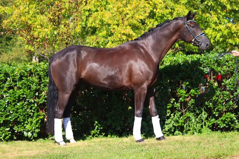 Findus B è un cavallo di taglia grande, elegante e di colore nero lucido che sa presentarsi in modo eccellente in tutte e tre le andature di base. Nel frattempo, Findus ha ricevuto un ulteriore addestramento ed è in procinto di entrare in classe di dressage. Direttamente dall'allevatore.
