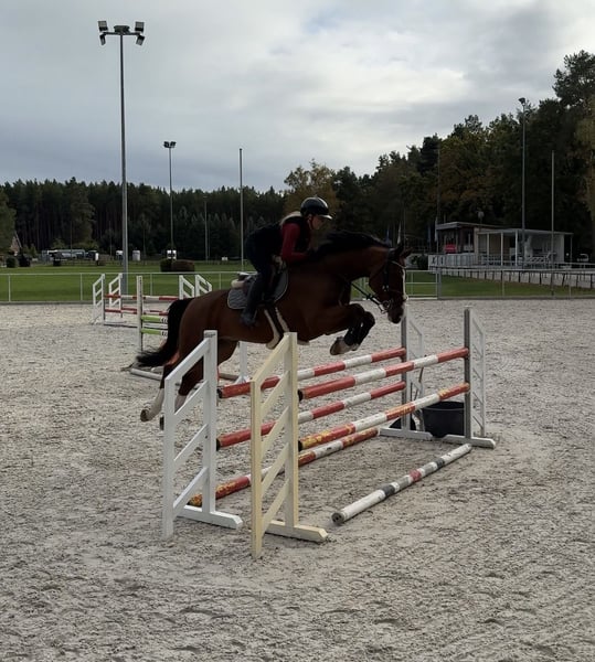 Zum Verkauf steht dieser hübsche und erfolgreiche 2019 geborene Hannoveraner Wallach von Ogano Sitte x Casiro III. Er ist ungefähr 172cm groß und bis Springpferde M platziert. Zusätzlich zu erwähnen ist, dass er bereits Geländepferde A gewinnen konnte und in einem Derbyspringen gestartet ist. Er überzeugt durch seine Einstellung und sein Vermögen am Sprung und möchte alles richtig machen. Ein Garant der immer fehlerfrei auf die andere Seite will. Das nötige Go zum Springen bringt er mit. Ein Pferd was sofort in Springprüfungen der Klasse L und M einsatzbereit ist und Potenzial für mehr hat. Im Umgang und in der täglichen Arbeit ist er total unkompliziert. Er besitzt 3 super GGA und ist fein Dressur zu reiten. Wahrscheinlich auch interessant für die Vielseitigkeit. Er geht brav allein und in der Gruppe ins Gelände. Lässt sich trotz seiner Größe ohne Probleme von kleineren Reitern bedienen. Schmiede- und verladefromm egal ob Anhänger, Transporter oder LKW. Auch beim Tierarzt brav. Aufgrund seines Alters dennoch kein Pferd für Anfänger oder Einsteiger. Er wird leider aufgrund von persönlichen Problemen meinerseits verkauft. TÜV mit Rücken und Hals aus Anfang 2025 ohne Mängel vorhanden. Preis der Qualität entsprechend!