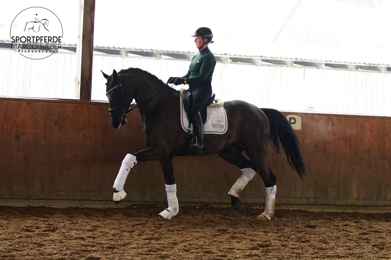 Hannoveraner | Wallach | *2019 | ca. 1,72 m ⚜️ Asgard’s Ibiza – Sezuan – Rubin Cortes ⚜️ 🖤 Ein Traum in Schwarz 🖤 Dieser äußerst typvolle, im mittleren Rahmen stehende Nachwuchswallach zieht einen vom ersten Moment an in seinen Bann – mit Ausdruck, Qualität und einem besonders charmanten Wesen. Dazu ist er einfach wunderschön anzusehen. Bewusst spät in den Sport gestartet und erst fünfjährig schonend angeritten, durfte er sich in Ruhe entwickeln – genau das zahlt sich heute aus. Er zeigt sich ausgeglichen, motiviert und befindet sich nun auf einem sehr guten Weg in Richtung M-Dressur. Unter dem Reiter begeistert er mit drei sehr guten Grundgangarten, natürlicher Bergauftendenz und angenehmem Fleiß. Er möchte gefallen, denkt mit und vermittelt dabei stets ein sicheres, gutes Gefühl. In seinem Ausbildungsstall wird großer Wert auf eine abwechslungsreiche, pferdegerechte Ausbildung gelegt: Neben der Dressurarbeit kennt er Stangen, kleine Parcours und geht ebenso entspannt ins Gelände – alles mit Ruhe und Übersicht. Durch seine Rittigkeit und sein ehrliches Wesen kann er sich wunderbar zu einem tollen Juniorenpferd entwickeln – ihm stehen sportlich alle Türen offen. Korrekt gebaut, sehr gut entwickelt, im Herdenverband aufgewachsen und noch in Züchterhand, wartet er nun auf seinen Menschen. Seine moderne Leistungsabstammung vereint Bewegungsqualität und Elastizität über Asgard’s Ibiza & Sezuan mit bewährter Rittigkeit und Einstellung über Rubin Cortes. ✨ Ein Pferd zum Verlieben – mit Perspektive ✨ Ein aktueller TÜV inkl. Rücken liegt vor. 📍 Standort: Raum Bispingen 🥕 Preis der Qualität entsprechend Für nähere Informationen unter: 0173 3013499
