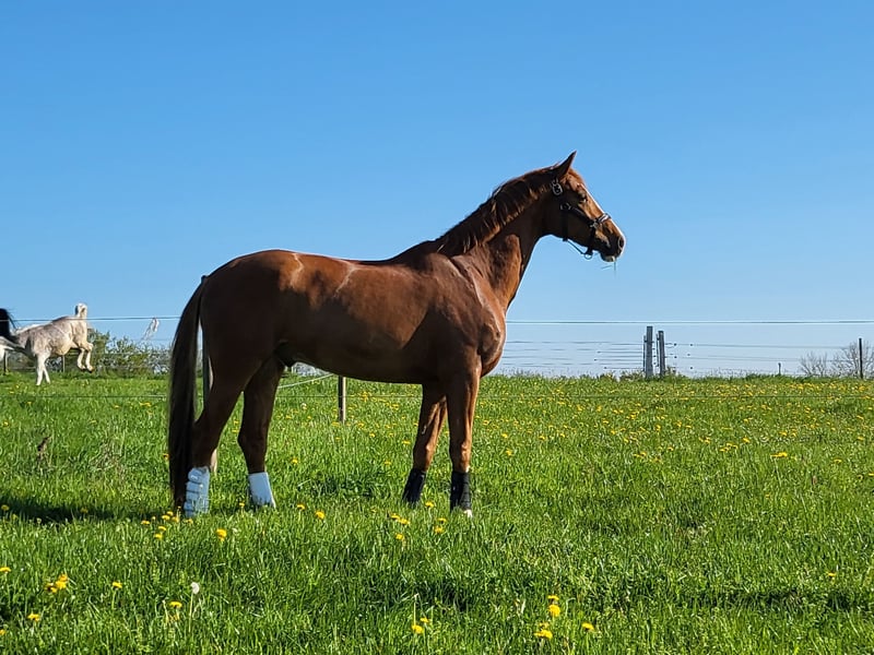 Verkaufe wünderschönen Hannoveraner Wallach Zum Verkauf steht ein wunderschöner Fuchs-Wallach, geboren im Jahr 2018. Mit einem Stockmaß von 173 cm bietet er die ideale Größe für vielseitige Freizeitaktivitäten. Sein freundliches Wesen und sein angenehmer Charakter machen ihn zu einem zuverlässigen Begleiter. Ideal für ängstliche Reiter oder Mutter-Tochter Team. Er ist weit ausgebildet, geländesicher und eignet sich hervorragend für Ausritte, Dressur und freut sich täglich über seinen Menschen. Nur in allerbeste Hände. Keine Händler. Bei Interesse oder weiteren Fragen stehe ich Ihnen gerne unter Tel. 0170 1424146 ab 13 Uhr telefonisch oder per WhatsApp zur Verfügung. Eine Besichtigung und Proberitt sind nach Vereinbarung möglich.