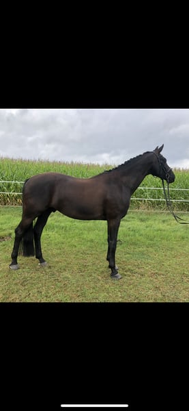 For sale: Hannoverian gelding This beautiful black gelding was foaled in 2019 and stands at 17.3 hh. Due to a suspensory ligament injury, he is currently only rideable at walk. His friendly nature makes him a great companion in the stable and ideal for leisurely walks. If you're interested or need more information, please feel free to contact me. Price is negotiable.