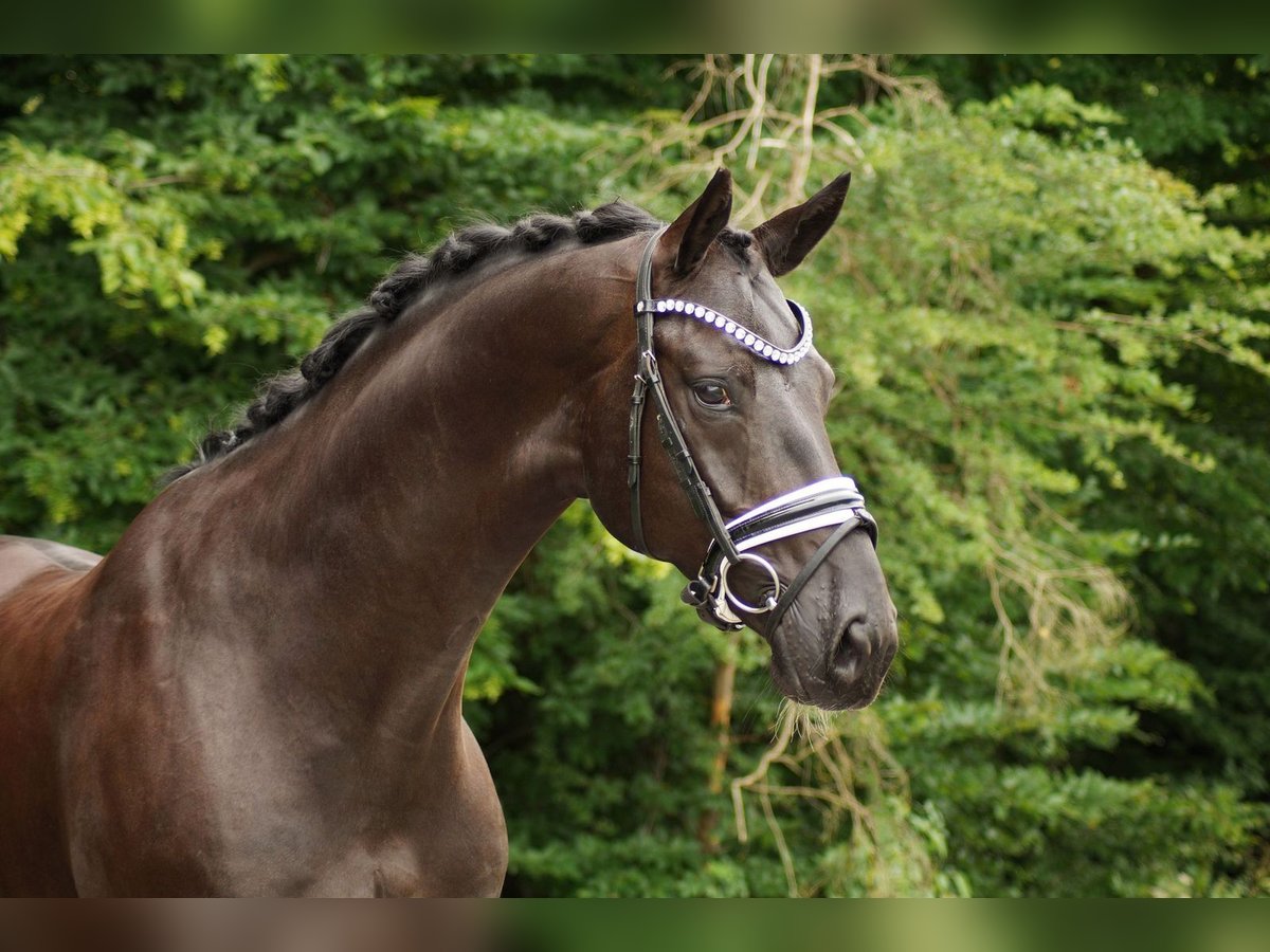 Quantez is a 6-year-old gelding by Quantensprung x De Niro. The beautiful black horse is currently successful in dressage horse tests of class M and impresses with his three very good gaits, his rideability, and attitude. His expressive presence in the arena is particularly noteworthy. With a lot of talent for the higher levels, Quantez has the best prerequisites for further training up to Grand Prix. He already shows initial approaches of piaffe and passage in training. An ideal horse for ambitious riders looking for a quality young horse with potential.