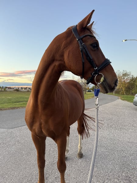 Ready to Dance Rainbow („Ralf“) – Dressurnachwuchs mit top Abstammung 🐴 Aus privaten/zeitlichen Gründen sucht mein 8-jähriger Hannoveraner Wallach Ready to Dance Rainbow („Ralf“) ein passendes neues Zuhause. Ralf ist ein sehr menschenbezogenes, verschmustes und soziales Pferd, das im Umgang brav und unkompliziert ist. Er steht aktuell in einer Herde auf Ganztageskoppel und soll auch künftig in Gesellschaft gehalten werden. Unter dem Sattel zeigt er sich motiviert, fein und arbeitswillig mit klarem Talent für die Dressur. Er ist stets bemüht und möchte gefallen, braucht aber einen sicheren, selbstbewussten Reiter mit Erfahrung in der Ausbildung (kein Anfänger- oder Lehrmeisterpferd), der ihm klare und feine Hilfen geben kann. Abstammung: u. a. von Rotsporn, De Niro und Desperados – beste Voraussetzungen für den Dressursport. Im Umgang auch mit Kindern lieb und zuverlässig. Ich wünsche mir für ihn ein liebevolles Zuhause mit passender Förderung.