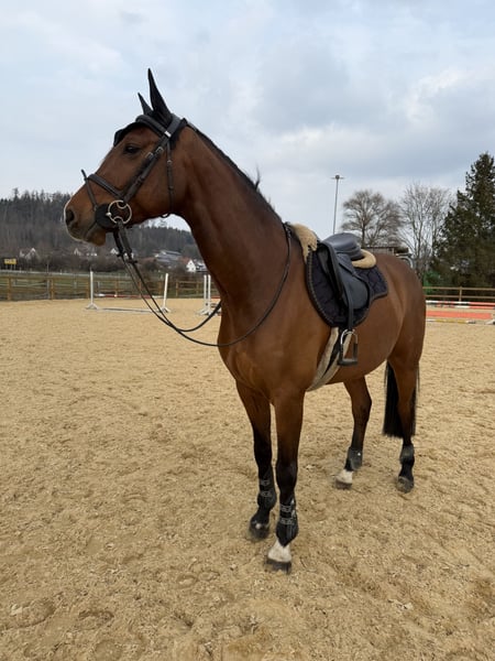 Comet ist ein achtjähriger Wallach, der mit Calido I auf der Vaterseite und Acord II auf der Mutterseite zwei leistungsbewährte Spitzenvererber im Pedigree führt. Seine Mutter war selbst im Sport bis zur schweren Klasse erfolgreich. Comet kam vor drei Jahren zu uns und hat eine solide Grundausbildung erhalten. Ihm wurde die nötige Zeit zum Reifen gegeben. Sechsjährig wurde er in Springpferdeprüfungen der Klasse A und siebenjährig in Springpferdeprüfungen der Klasse L - jeweils mit zahlreichen Erfolgen – vorgestellt. Gegen Ende der Saison lief er zwei Springpferde M*, in denen er sich mit 8-er Noten vorne platzieren konnte. Anfang März dieses Jahres konnte er sich auf Anhieb im M* platzieren und lässt somit auf eine erfolgreiche Zukunft hoffen. Comet ist brav im Umgang, schmiede- und verladefromm und macht in der täglichen Arbeit immer Spaß. Er besticht durch einen praktischen Galopp, der sich beliebig verlängern und verkürzen lässt – dabei ist er stets fleißig am Bein. Das Pferd vereint schnelle Reflexe, Vorsicht, Kampfgeist, Schnelligkeit und den gewissen Spaßfaktor. Comet steht am Anfang seiner Karriere – mit konstantem Training und einer weiterhin fairen Förderung wird er zu einem Sportler reifen, mit dem man jedes Springen für sich entscheiden kann. Wer also ein Pferd für die Zukunft sucht, mit dem man zusammen wachsen kann, der hat hier den richtigen Partner gefunden. Comet war bei uns nie krank – er ist regelmäßig geimpft und entwurmt. Er wurde prophylaktisch jährlich dem Zahnarzt und zur Chiro vorgestellt. Aktuell steht er in einer Paddockbox mit täglichem Koppelgang. Verkauft wird aufgrund von privater Veränderung. Für weitere Infos können sie sich gerne auch telefonisch unter der 01705369054 bei mir melden.