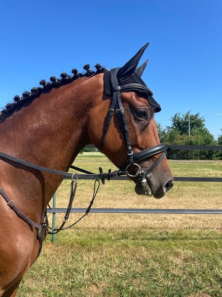 Comet es un caballo gelding de ocho años, que en su pedigrí cuenta con dos reproductores de alto rendimiento: Calido I por parte del padre y Acord II por parte de la madre. Su madre fue exitosa en competición hasta la categoría de Gran Premio. Llegó a nosotros hace tres años y ha recibido una sólida formación básica. Se le dio el tiempo necesario para que madurara. A los seis años, fue presentado en concursos de salto en la categoría de A y, a los siete, en la categoría de L, logrando numerosos éxitos en ambas. A finales de la temporada, compitió en dos pruebas de salto M*, en las que pudo colocarse con notas de 8 en varias ocasiones. A principios de marzo de este año, logró colocarse en su primera prueba M*, dejando buenas expectativas para su futuro. Comet es tranquilo en su manejo, es calmado en las herraduras y en el remolque, y siempre resulta un placer trabajar con él a diario. Destaca por un galope práctico, que puede alargarse o acortarse a voluntad, siempre con un paso decidido y atento a la pierna. El caballo combina reflejos rápidos, precaución, espíritu de lucha, velocidad y un cierto factor de diversión. Comet está en el inicio de su carrera deportiva. Con entrenamiento constante y una promoción justa, se convertirá en un deportista que puede ganar cualquier concurso de salto. Por lo tanto, si buscas un caballo con potencial para el futuro, con el que puedas crecer juntos, aquí tienes a tu compañero ideal. Nunca ha estado enfermo con nosotros; está vacunado y desparasitado regularmente. Se le ha llevado anualmente al dentista y a un fisioterapeuta para controles preventivos. Actualmente, se encuentra en un box en paddock con acceso diario a pasto. Se vende por motivos de cambios personales. Para más información, no dudes en contactarme también por teléfono al 01705369054.