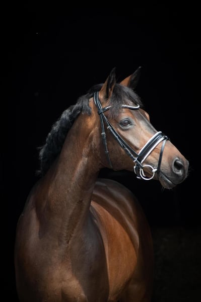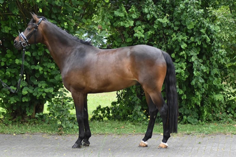 For sale is a compact bay Hannoverian gelding. He impresses with his pleasant temperament, good aptitude for learning, and willingness to improve. Ferdy already demonstrates considerable talent in training the Grand Prix level movements. He is currently placed up to M** level. He is well-trained and easy for amateurs to ride, reliable in handling, making him a true gem. In the arena, he is a dependable partner, moving relaxed and with energy. If you are interested in our gelding, please feel free to contact us at: 0170 8159909.