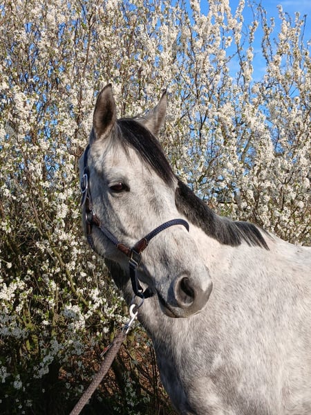 Im Auftrag der Züchterin wird hier der charmante Wallach Diastol M verkauft, 8 Jahre alt, abstammend von Diacontinus x Stolzenberg. Er hat ein Stockmaß von 1,68cm, ist sehr lieb im Umgang, menschenbezogen und stets freundlich. Diastol M ist Herden verträglich (steht aktuell in einer gemischten Herde). Er ist weder ranghoch noch rangniedrig. Er spielt gerne mit seinen Kumpels. Zuhause beim Reiten eher der gemütliche Typ, im Gelände mit viel Go, auf dem Turnier ist er „an“, aber händelbar. Er ist arbeitsintensiv im Training, hat einen schwungvollen Trab und einen sehr bequemer Galopp. Er ist kein Selbstläufer, aber immer brav. Mit fliegenden Galoppwechsel hat er seine Probleme, wurde osteopathisch kontrolliert ohne Befund. Bei Rimondo gibt es einige Videos aus den letzten Jahren. Er ist ein Verlasspferd auf dem Turnier, steht und fährt alleine, aber auch zu zweit, lässt sich problemlos am Anhänger anbinden, er ist unkompliziert. Er kennt Hunde und Kinder und kann problemlos von ihnen geritten werden. (Ausnahme Gelände) Er steigt nicht, bockt nicht, hat keinerlei Unarten. Er ist im Gelände brav bei vorbeifahrenden LKWs, Autos usw. Er hat Befunde, die ihn sportlich aber nicht einschränken, steiler Huf vorne rechts und Kehlkopf operiert im Oktober 2024 (Kehlkopflähmung links). Ohne Eisen vorne läuft er nicht. Er eignet sich ideal als Freizeitpartner mit Turnierambitionen. Wir wünschen uns für ihn ein wertschätzendes Zuhause mit viel Auslauf. Gute Röntgenbilder liegen vom 14.03.26 vor.