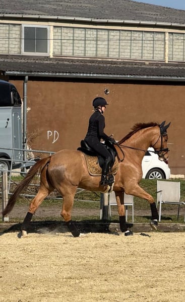 Beautiful Hanoverian Gelding for Sale Up for sale is a stunning chestnut gelding, born in 2018. Standing at 173 cm, he offers the perfect size for a variety of leisure activities. His friendly nature and pleasant temperament make him a reliable partner. Ideal for nervous riders or a mother-daughter team. He is well-trained, confident in the terrain, and perfectly suited for trail rides, dressage, and enjoys daily interaction with his handler. Only in the best hands. No dealers. If interested or for further questions, please feel free to contact me by phone or WhatsApp from 1 p.m. onwards at 0170 1424146. Viewing and trial rides can be arranged by appointment.