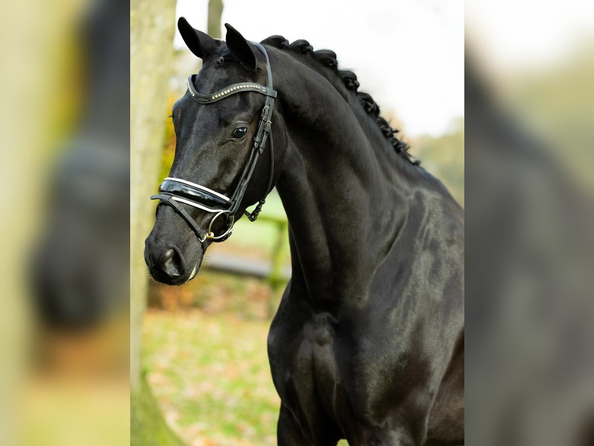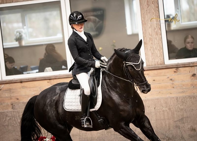 Außergewöhnliche schwarze Hannoveraner Wallach vereint alles, was sich anspruchsvolle Reiterinnen und Reiter im modernen Sportpferd wünschen. Mit seinem beeindruckenden Erscheinungsbild, seiner kraftvollen Ausstrahlung und seinem harmonischen Gebäude zieht er sofort alle Blicke auf sich. Er überzeugt nicht nur durch seine elegante Optik, sondern vor allem durch seine herausragenden Grundgangarten. Sein Schritt ist taktsicher und raumgreifend, der Trab elastisch mit viel Schwung und aktiver Hinterhand, und der Galopp ist bergauf gesprungen, kraftvoll und hervorragend ausbalanciert. Diese Qualität macht ihn sowohl für die Dressurarbeit auf gehobenem Niveau als auch für den Parcours äußerst interessant. Im Springen zeigt er großes Vermögen, eine sehr gute Technik am Sprung sowie eine bemerkenswerte Vorsicht. Er absolviert Parcours mit Übersicht, Rhythmus und der nötigen Einstellung, um auch anspruchsvolle Aufgaben souverän zu meistern. Gleichzeitig bringt er die Rittigkeit und Einstellung mit, die ihn zu einem vielseitigen Partner für beide Disziplinen machen. Charakterlich ist dieser Wallach ein echtes Verlasspferd. Er ist freundlich, menschenbezogen und stets motiviert bei der Arbeit. Seine ausgeglichene Art macht ihn sowohl für ambitionierte Amateure als auch für erfahrene Profis zu einem idealen Partner. Er ist leicht zu reiten, fein an den Hilfen und zeigt sich sowohl im täglichen Training als auch auf fremden Plätzen nervenstark und zuverlässig. Selbstverständlich ist er vollständig tierärztlich untersucht. Aktuelle Röntgenbilder sowie ein umfassender tierärztlicher Bericht liegen vor und sind ohne Befund, sodass er auch höchsten Ansprüchen in gesundheitlicher Hinsicht gerecht wird. Ein Pferd mit außergewöhnlicher Qualität, vielseitigem Talent und bestem Charakter – ideal für Reiterinnen und Reiter, die einen zuverlässigen Partner für den gehobenen Dressur- und Springsport suchen.