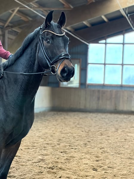For sale is an exceptionally charming 7-year-old gelding by For Romance I out of a Donnerhall mare. He combines top-quality conformation, excellent rideability, and an engaging personality – a horse that will inspire both experienced amateurs and ambitious dressage riders alike. Details: • Age: 7 years • Height: 17.4 hh • Pedigree: For Romance I × Donnerhall • Achievements: High placings in Dressage Horse Class A • Health: Full set of X-rays from 2023 and neck X-rays from 2024 with no findings In daily handling, he is very sweet, friendly, and affectionate. Under saddle, he impresses with outstanding rideability, a gentle, steady contact, and a very comfortable seat. He works with focus, learns quickly, and makes it easy for his rider to develop him correctly. His basic gaits provide a strong foundation for further training: • Walk: Ground-covering and rhythmical • Trot: Elastic, active from the carpal joint • Canter: Round, balanced, and with a natural uphill tendency A particular highlight is his powerful, functional hind leg – with pronounced collection willingness and excellent push-off, making him ideal for progressing to higher levels. This gelding combines solid stability with great elegance in a most impressive way. Following a pasture accident, he only shows a minor cosmetic issue at the hock, which does not affect his performance. He is currently in training and, despite his high quality, offered at an attractive price. A modern, talented dressage horse that will bring both sporting success and daily joy to his new owner. Interested? I look forward to hearing from you and arranging a personal visit! Feel free to contact me via WhatsApp at 01723423408.