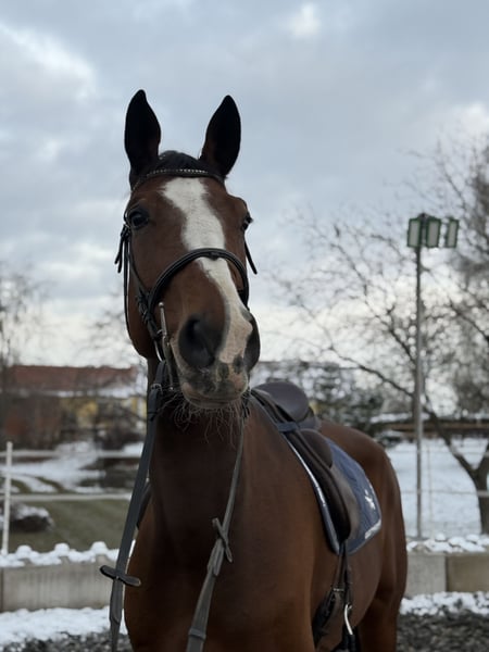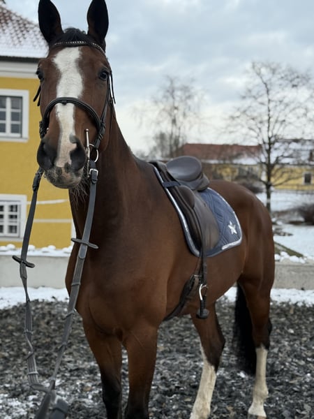 Zum Verkauf steht der 2018 geborene Hannoveraner Wallach Quantico 40 (Qualito x Corlensky G x Embassy I), ein großrahmiges, modernes Springpferd mit tollem Charakter und ersten Erfolgen im Turniersport. 🔹 Daten & Abstammung • Name: Quantico 40 • Rasse: Hannoveraner • Geschlecht: Wallach • Geboren: 20.02.2018 • Stockmaß: ca. 174 cm • Farbe: Brauner mit Blesse • Abstammung: • Vater: Qualito (Quaid I – Quite Rubin) • Muttervater: Corlensky G (Clinton – Rabanna van Costerveld) Leistungsstarke Springabstammung mit viel Vermögen und Vorsicht am Sprung. 🔹 Ausbildungsstand & Turniererfahrung • Solide grundausgebildet, leichtrittig und gut an den Hilfen • Parcourssicher, geritten in Jungpferdespringprüfungen Kl. L und M* (ca. 110–120 cm) • Platzierung in Springpferdeprüfung Kl. L (110 cm), weitere Clear Rounds in Jungpferdespringen • Starts u. a. in Ranshofen/Braunau am Inn und Tiefenhof/Opf., außerdem internationale Starts bis 1,20 m (CSI1 Silver Tour)* 🔹 Charakter & Umgang Quantico 40 zeigt sich im täglichen Umgang sehr höflich und menschenbezogen. Er ist aufmerksam, lernwillig und stets arbeitsbereit, dabei angenehm im Temperament und nicht heiß. 🔹 Hinweis zur Nutzung Quantico 40 wird aktuell gesundheitsbewusst und schonend gearbeitet. Der Fokus liegt auf Dressur Arbeit sowie gymnastischem Springen, was ihm sichtlich liegt und problemlos möglich ist. Auf anspruchsvolles Parcoursspringen wird derzeit verzichtet. 🔹 Gesundheit • Equidenpass (Hannoveraner Verband) vorhanden • Regelmäßig geimpft und entwurmt • Weitere tierärztliche Unterlagen/TÜV können bei ernsthaftem Interesse veranlasst werden Bei Interesse oder für weitere Informationen stehe ich gerne zur Verfügung. Vereinbaren Sie einen Termin für ein Kennenlernen und überzeugen Sie sich selbst von diesem angenehmen und talentierten Wallach. Um unnötigen Reittourismus zu vermeiden, berechnen wir 50 € für das Probereiten, die selbstverständlich beim Kauf angerechnet werden. Anfragen bitte ausschließlich telefonisch, gerne auch per WhatsApp.
